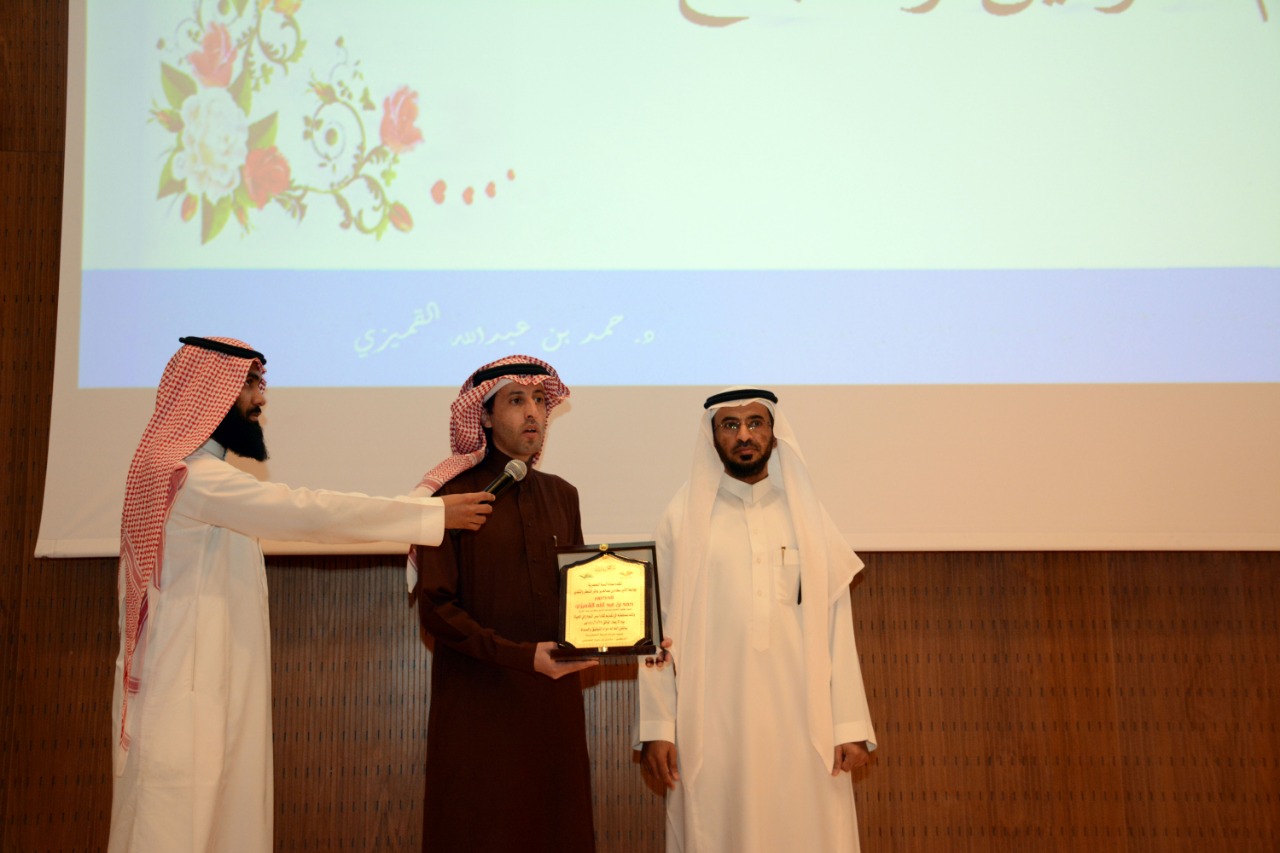 وفي نهاية اللقاء تقدم وكيل عمادة السنة التحضيرية للشؤون التعليمية والأكاديمية الدكتور فهد شهيل العلوي بوافر الشكر والتقدير لسعادة الدكتور حمد القميزي ولكافة الطلاب على الحضور والتفاعل وقدم درعاً تذكارياً للضيف