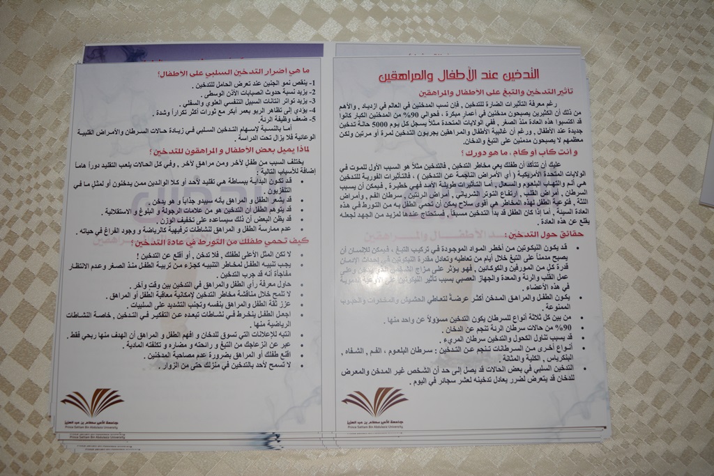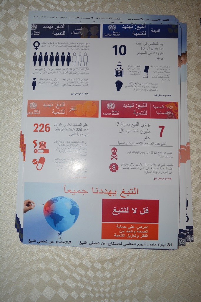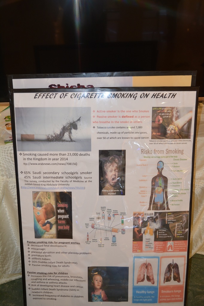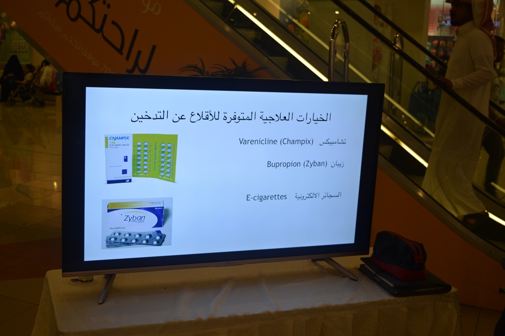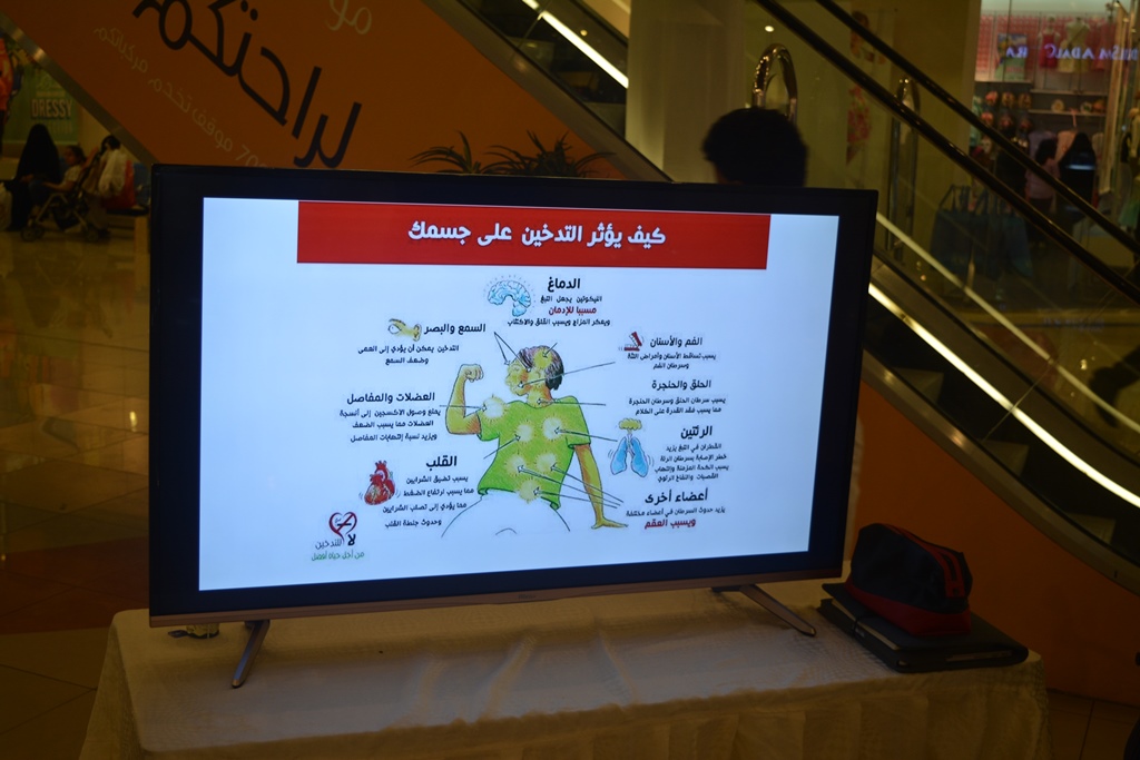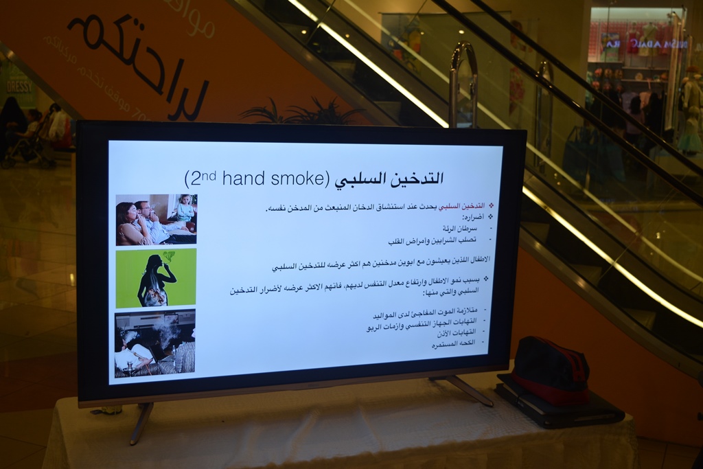 حيث كانت الفعالية عبارة معرض احتوى عدة أركان توعوية وتثقيفية منها التوعية عن أضرار التدخين والمضاعفات والأمراض التي يسببها وكذلك عرض بعض الأدوية والطرق المساعدة للإقلاع عن التدخين وتوزيع بعض المطويات والمنشورات بذلك , كما تم تثقيف زوار المعرض عن برامج جمعيات مكافحة التدخين التابعة لوزارة الصحة وخدماتها المجانية وآلية الاستفادة منها.