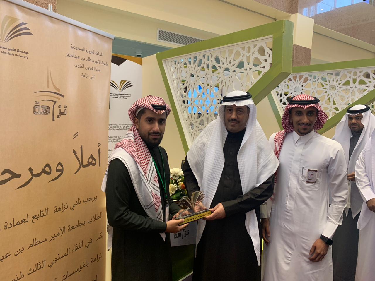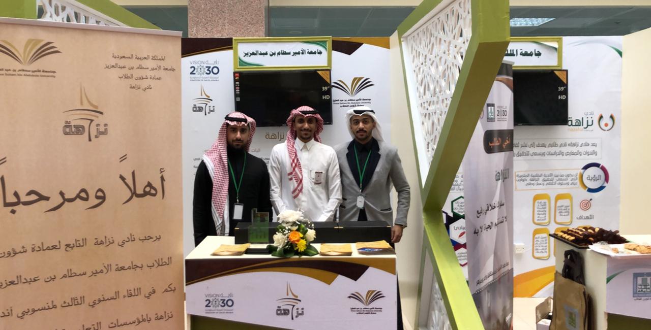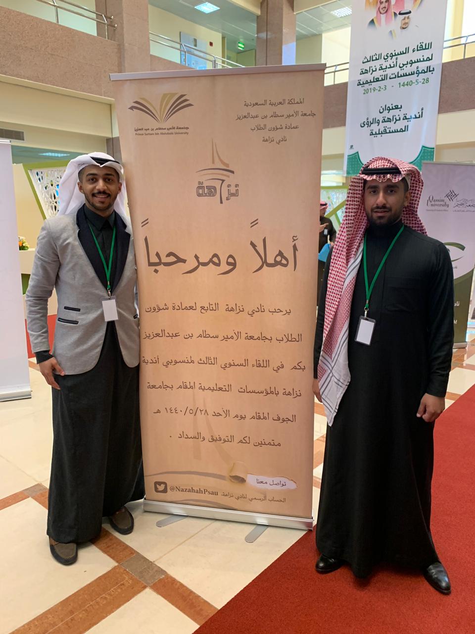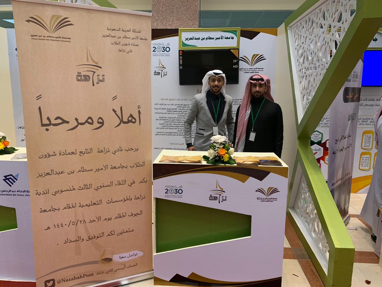 تحت إشراف عمادة شؤون الطلاب بجامعة الأمير سطام بن عبدالعزيز شارك نادي نزاهة بكلية إدارة الأعمال في اللقاء السنوي الثالث لأندية نزاهة بجامعة الجوف والذي عقد بمشاركة أندية نزاهة بمختلف المؤسسات التعليمية الأحد 28/5/1440هـ تحت شعار (حماية النزاهة ومكافحة الفساد في رؤية المملكة 2030) وقد شارك ممثلاً للنادي الأستاذ محمد الرفاعي من عمادة شؤون الطلاب, كما شارك كما شارك الطالبان محمد السعود رئيس النادي وسعد التويجري نائب رئيس النادي لتمثيل النادي في هذا اللقاء, وقد قدم المشاركون بعض المشاهد التمثيلية التي تجسد قضية الفساد وآلية مكافحته وبعضاً من إنجازات النادي وخططه المستقبلية, وقد تم خلال اللقاء تقديم تعريفاً بالجامعة متضمناً رؤيتها ورسالتها وأهدافها الاستراتيجية وكلياتها وفروعها المختلفة وأهم الإنجازات التي حققتها الجامعة خلال الفترة الماضية.