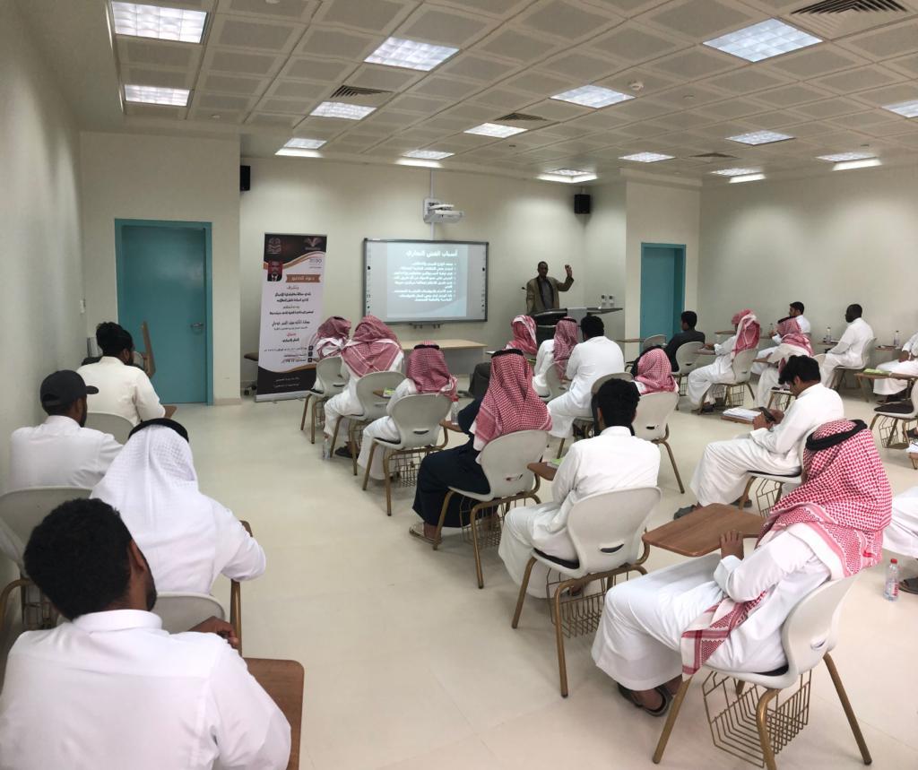 تحت إشراف عمادة شؤون الطلاب ، نظم نادي نزاهة بكلية إدارة الأعمال محاضرة علمية بعنوان : الغش التجاري اليوم الاثنين 11/7/1440 هـ الموافق 18/3/2019م قدم لها سعادة الدكتور / سيف النصر خوجلي الأستاذ المساعد بقسم القانون حيث تناولت المحاضرة حيث تناولت المحاضرة مفهوم الغش وأنواعه ومجالاته والقوانين التي اعتمدتها المملكة في مجال الغش التجاري ،كما تناولت المحاضرة الآثار والتداعيات التي يسببها الغش التجاري على كل من الأفراد والشركات بل على المجتمع بأسره. مع التركيز على دراسة هذا الأثر على قطاع الأعمال بشكل خاص وعلى الاقتصاد السعودي بوجه عام .
