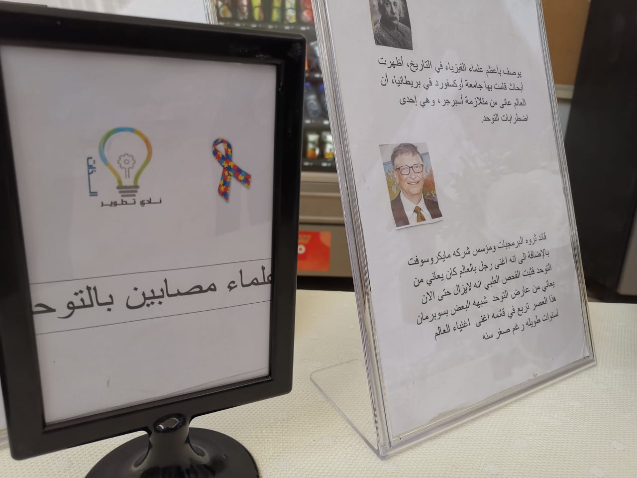 يمتلك الأشخاص المصابون بالتوحد أو كما يعرفه بعض العلماء بالذاتوية قدرات ومهارات يعجز عن امتلاكها الأشخاص الطبيعيون، حيث عرض نادي تطوير الذات بعمادة السنة التحضيرية قسم الطالبات يوم الاثنين ١٤٤١/٠٢/٢٩هـ من خلال ركن بسيط نماذج لعلماء مصابون بالتوحد حققوا إنجازات وأبحاث علمية على مستوى العالم مثل اينشتاين و دانيال تاميت وغيرهم حيث بين هذا الركن أن المصابين بالتوحد يمتلكون مهارات وقدرات عالية يجب استغلالها لأجل دمجهم في المجتمع أولا وتنمية ما يمتلكونه من مهارات على نحو يفيد العالم. اشتمل هذا الركن أيضا على المسببات التي تؤدي إلى هذا المرض، وكيفية اكتشافه، وأيضا كيفية التعامل مع المصابين به.