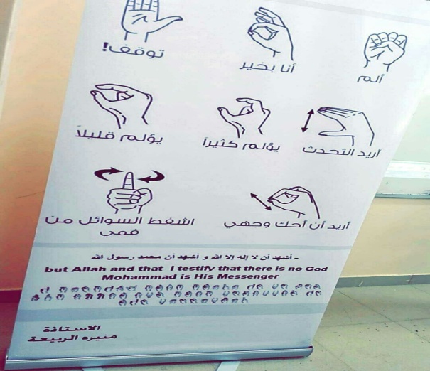أقام نادي تطوير الذات في عمادة السنة التحضيريه (شطر الطالبات) نشاطًا توعويًا بعنوان "تعلم لغتي كي تفهمني" بإشراف الأستاذة/ منيرة الربيعة. ويهدف هذا النشاط إلى حث الطالبات ومنسوبات الجامعة إلى تعلم لغة الإشارة لما لها من أهمية عظيمه في الإندماج بين أفراد المجتمع من جهة واكتساب مهارة جديدة (إنسانية) من جهة أخرى.