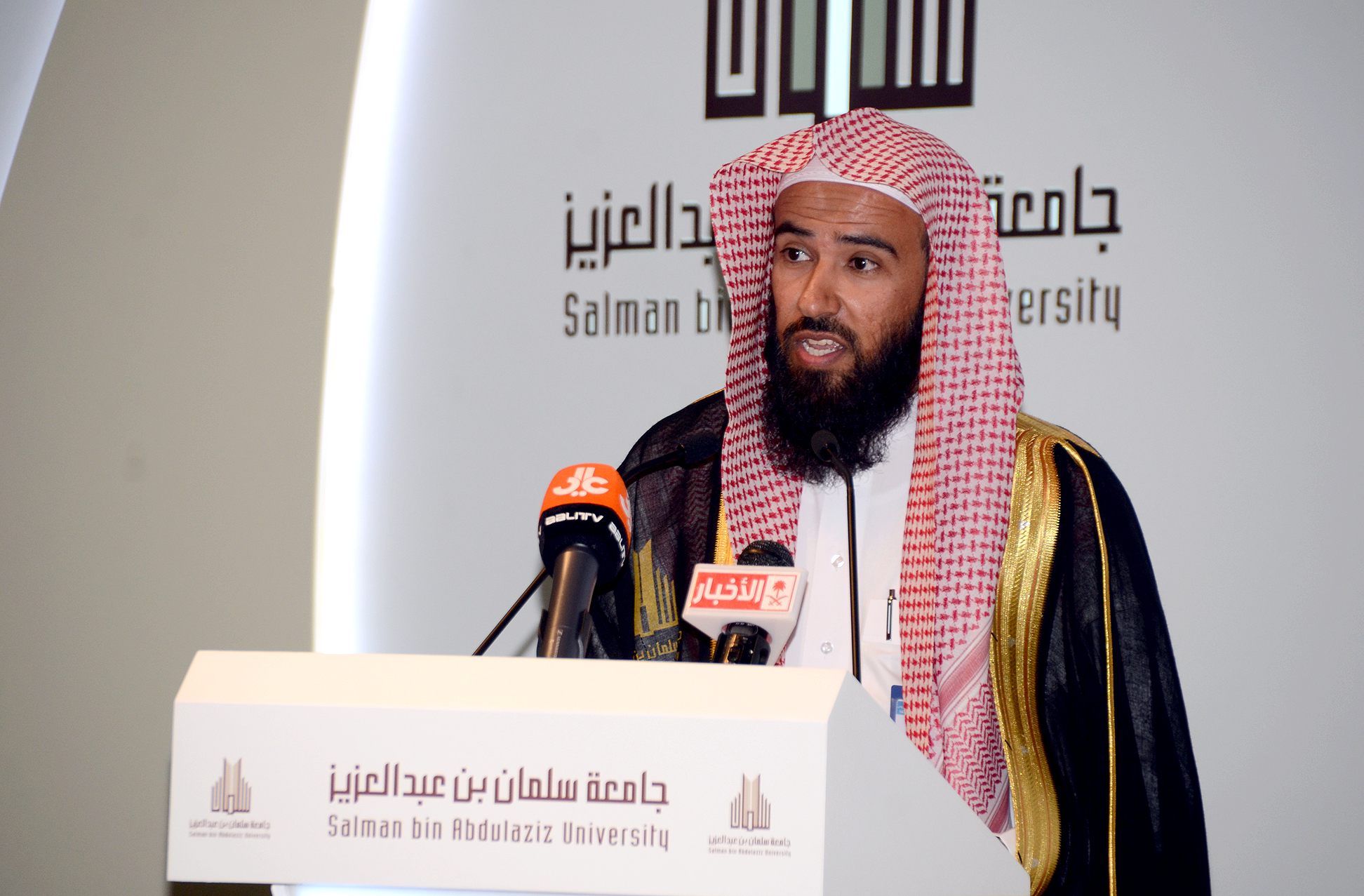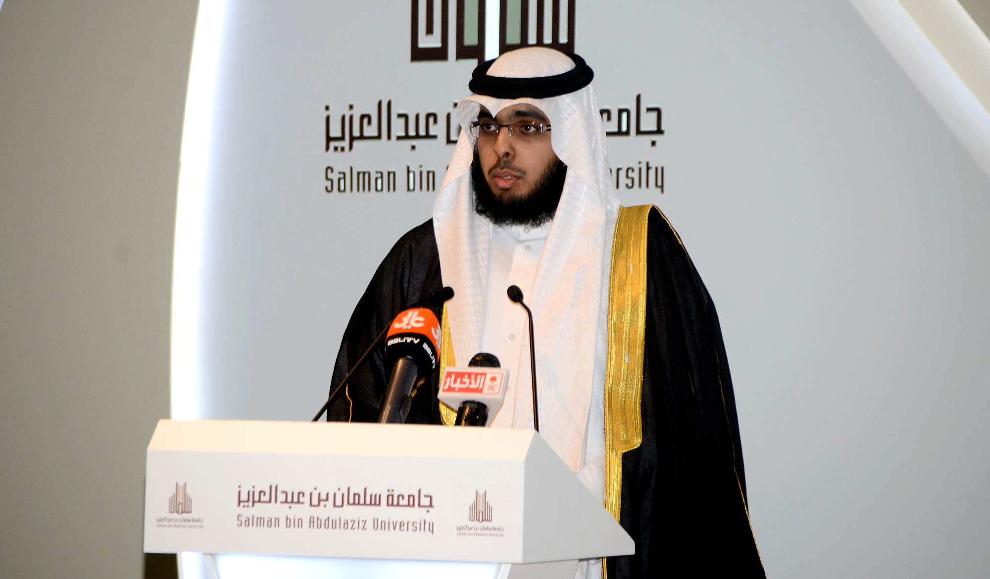وأضاف : صاحب السمو هذه الليلة بالنسبة للخريجين هي ليلة مضيئة تزهو على كل الليالي بصعود نجم الطلاب الذين اكتملت بتوفيق الله تعالى فرحتهم، فنالوا حظهم في النجاح والتفوق، وسطروا بجهدهم صفحات مشرقة في سجل الحياة الجامعية، فهنا تميّز وهنالك مثابرة، أثمَرَا تخرجاً، وانتقالاً من مرحلة الأخذ والتعلم إلى مرحلة العطاء والبناء والبذل، وقد أشرق عرسنا الجامعي برعايتكم الكريمة للدفعة الخامسة من خريجي الجامعة، فمرحبا بك أيها الأمير النبيل وأنت تقتطع الوقت الثمين، وتتجشم بكل حب وسرور مسافة الطريق؛ لترعى ليلة من ليالي الحصاد لتشارك الجامعة فرحة الأبناء بيوم من أيام عمرهم تقديراً لهم ولآبائهم وأسرهم ولمؤسستهم التعليمية جامعة سلمان بن عبدالعزيز ، صاحب السمو: حضورنا الأكارم .. إن ما تسعى له الجامعة من إنجاز وتطويرٍ إنَّما هو لأجلِ رؤية أمثال هذه الكوكبة المزهرة هذا العام وكلَّ عام بإذن الله.. لذا طَمَحَتْ في رؤيتها إلى تقديم معرفة متجدِّدة تُواكِبُ العصر ، وتتفاعلُ مع المستجداتِ ، وتستشعر المستقبل وآفاقَه ، فبادرت منذ وقت مبكر إلى إعداد خطّتها الاستراتيجية التي أمكن من خلالها التركيز على الأولويات، وتحديد الأهداف، وطرح المبادرات والمشاريع، وها هي الجامعة الآن تحث الخطى في تطبيقها وتقترب من اقتطاف أولى ثمارها ..وعَمِلْنا من جهة أخرى على تطوير برامجنا الأكاديمية والتوفيق بينها ، واستقطاب الكادر الأكاديمي المتميز لها .. مصاحِبةً ذلك بالتواصل العلمي والبحثي مع جامعاتٍ عالمية عريقة أسهمت خلال السنوات الماضية إسهاماً مؤثراً في تدريب الطلاب، وتقوية المناهج، الأمر الذي أوصل عدداً من أقسام الجامعة الأكاديمية لعتبات الاعتماد الأكاديمي، وهو طريقنا إن شاء الله إلى الريادة والتميز ، أما البنية التحتية للجامعة يا صاحب السمو .. فتشهد أفضل أيامها ، فصرح الجامعة الذي نتفيأ ظلاله الليلةَ يشرف على التكامل بفضل الله تعالى والمدينة الطبية تبدأ انطلاقتها قريباً ، والمدن الجامعية في الفروع تعمل على قدم وساق، ولقد شاهدتم في العرض الوثائقي بعضاً من جهود الجامعة على الصعيد الأكاديميِّ والإداريِّ والبحثيِّ والبِنْيَةِ التحتيَّةِ والشراكةِ المجتمعيِّةِ.