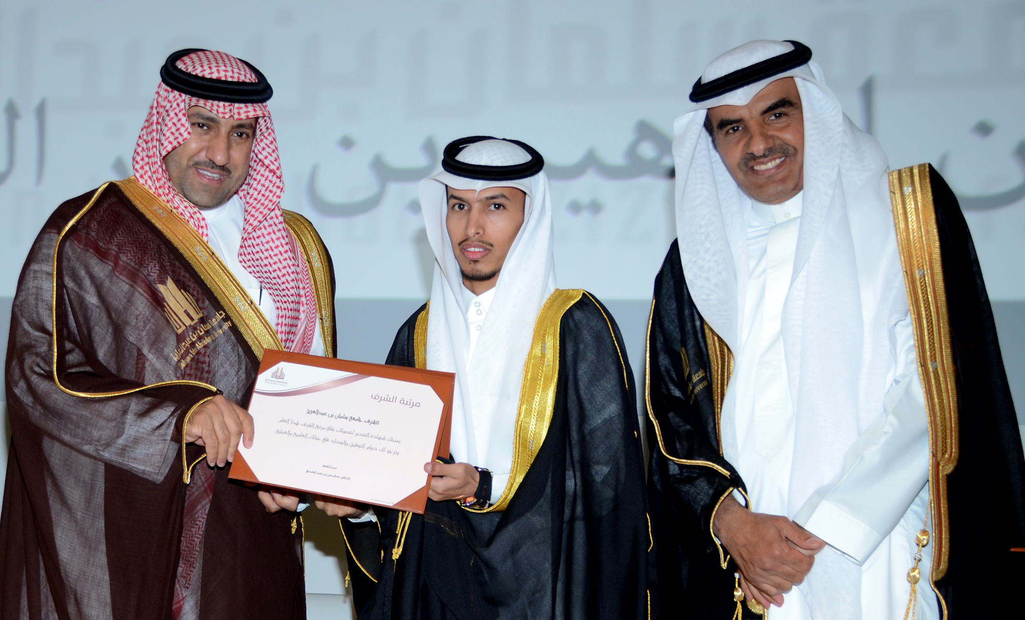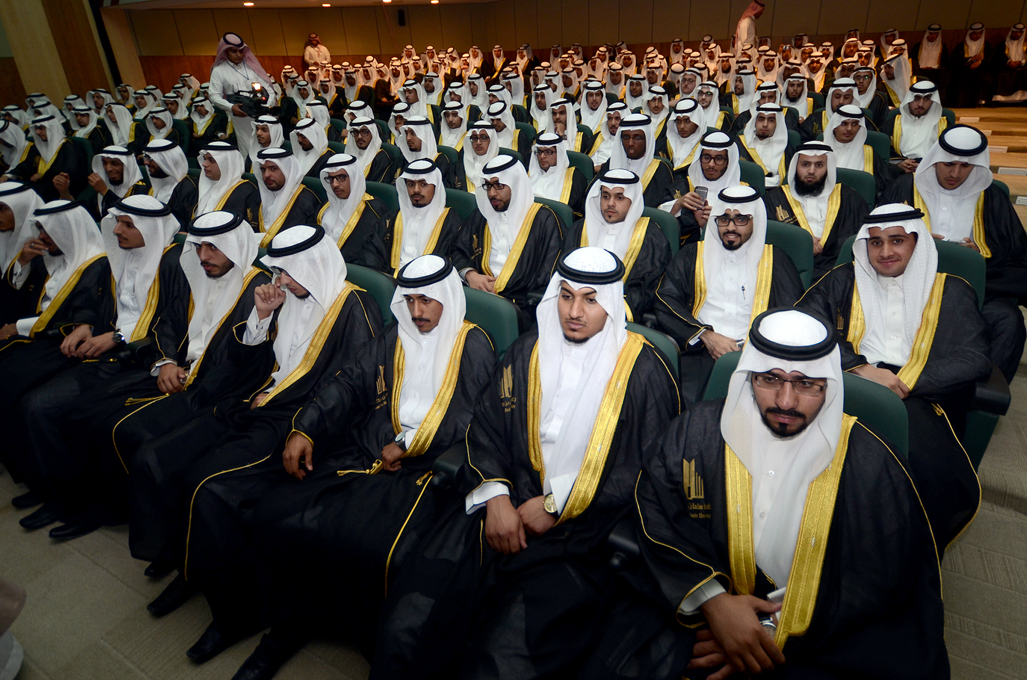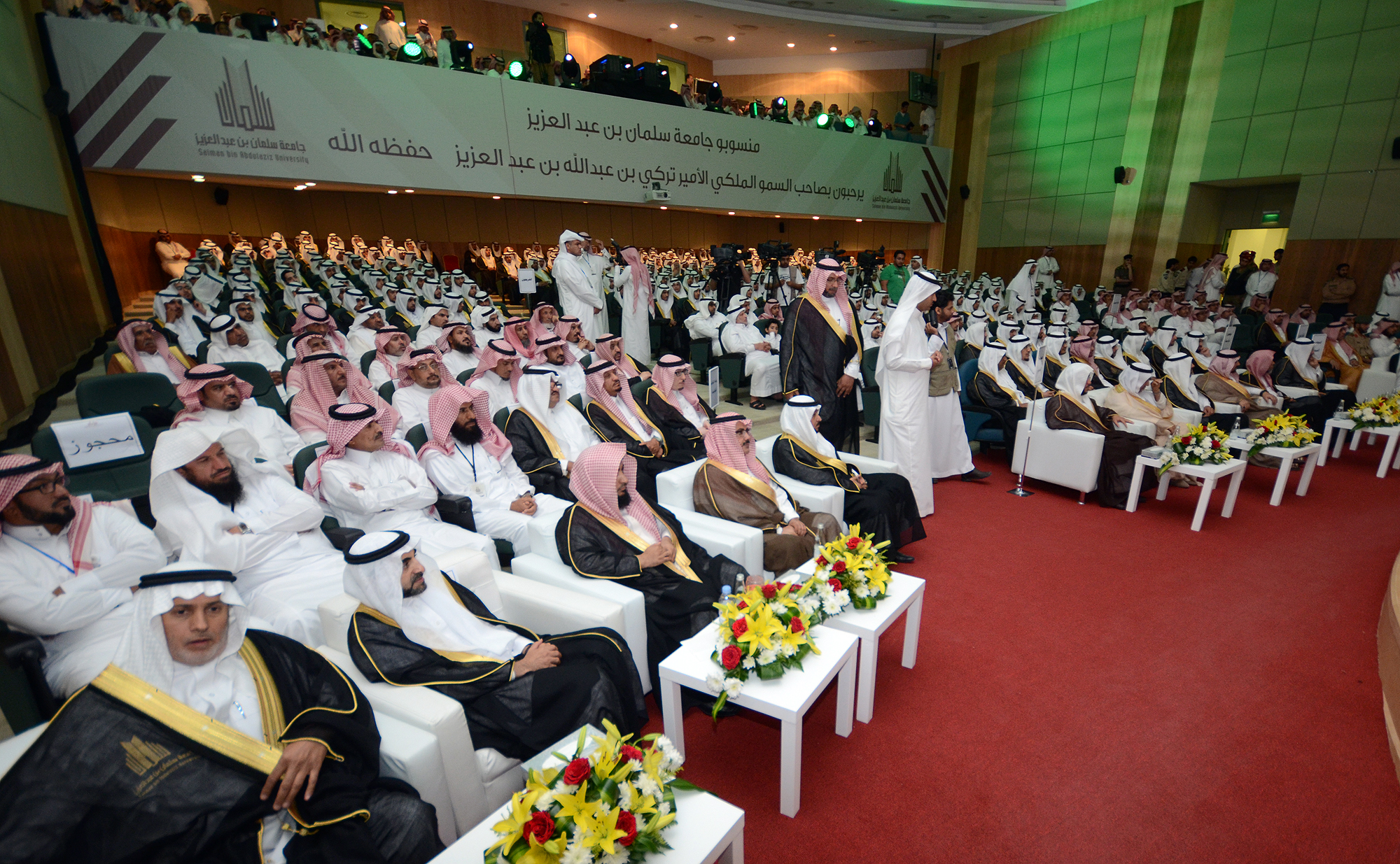 وبدأت مسيرة الخريجين تلاها الحفل الخطابي الذي افتتح بآيات من الذكر الحكيم. ثم ألقيت كلمة الخريجين التي ألقاها نيابة عنهم الخريج يزيد عبدالعزيز الحقباني وجاء فيها: أقف اللحظة بين أيديكم بالأصالة عن نفسي ونيابة عن زملائي الخريجين لنهنئ أنفسنا بقدومكم ومشاركتكم يومنا هذا ونهنئكم بقطف ثمار الغرس الذي سقيتموه بغيثكم ونقف خاشعين لله عز وجل – شاكرين أنعمه أن وفقنا لإتمام المسيرة وأسبغ علينا نعمه ظاهرة وباطنة ، والشكر بعد الله – عز وجل – لخادم الحرمين الشريفين الملك عبدالله بن عبدالعزيز – حفظه الله – وولي عهده الأمين – وولي ولي عهده الذين أولو الشباب عناية خاصة ووجهوا بالاهتمام بهم أطفالاً وفتياناً وشباباً ، وزرعوا في نفسوهم القيم النبيلة وأسسوا لديهم مبادئ الأخلاق الحميدة ، وبثوا فيهم روح الجد والمثابرة حتى تتباهى بهم الأمم رجالاً أفذاذا ، وعلماء وباحثين في شتى ميادين العلم والمعرفة التي تعود بالخير الوفير على وطننا الحبيب، فلهم منا الشكر والعرفان بالجميل، وعلينا لهم الولاء والطاعة والسعي لرفع راية وطننا خفاقة، وها نحن اليوم في رحاب جامعة سلمان بن عبدالعزيز التي استقبلتنا فتياناً ، كلاً منا يحمل بين جنباته طموحات وآمال ، فتعهدتنا بالتوجيه ، والإرشاد والتعليم ، واستوعبت آمالنا وطموحاتنا ، وهيأت لنا هذه الصروح الشامخة، وأودعتها معامل ومختبرات مما أنتجته أحدث التكنولوجيا في العالم ، ووفرت لنا الكوادر العلمية المؤهلة من أساتذة وباحثين، لتنقلنا من طلاب الثانوي إلى خريجين متخصصين في شتى المجالات نرفع بنيان وطننا الغالي ونفتح آفاق العلم والمعرفة أمام الأجيال القادمة، وستبقى جامعة سلمان بن عبدالعزيز في ذاكرتنا ما حيينا لن ننسى أبداً استاذاً فاضلاً دربنا على التجربة حتى أتقناها بمهارة ، واستاذاً قديراً بسط لنا النظريات العلمية حتى طبقناها علمياً، واستاذاً ثالثاً علمنا كيف ننقل خبراتنا في تخصصاتنا المختلفة إلى الأجيال القادمة، وأن لهذه الجامعة ديناً في أعناقنا نحن معشر الخريجين ، وواجباً دينياً ووطنياً نحمله على عواتقنا ، نحقق به جانباً من آمال هذا الوطن وشيءً من تطلعات ورؤى قيادته الحكيمة ، ونرفع شأنه أمام الامم.