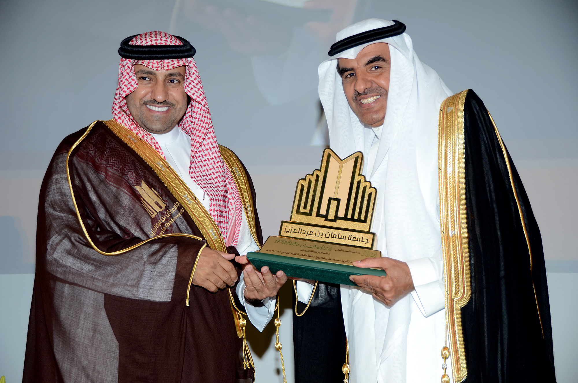 وفي نهاية الحفل قدم معالي مدير الجامعة د. عبدالرحمن العاصمي درعاً تذكارياً لصاحب السمو الملكي الأمير تركي بن عبدالله بن عبدالعزيز.