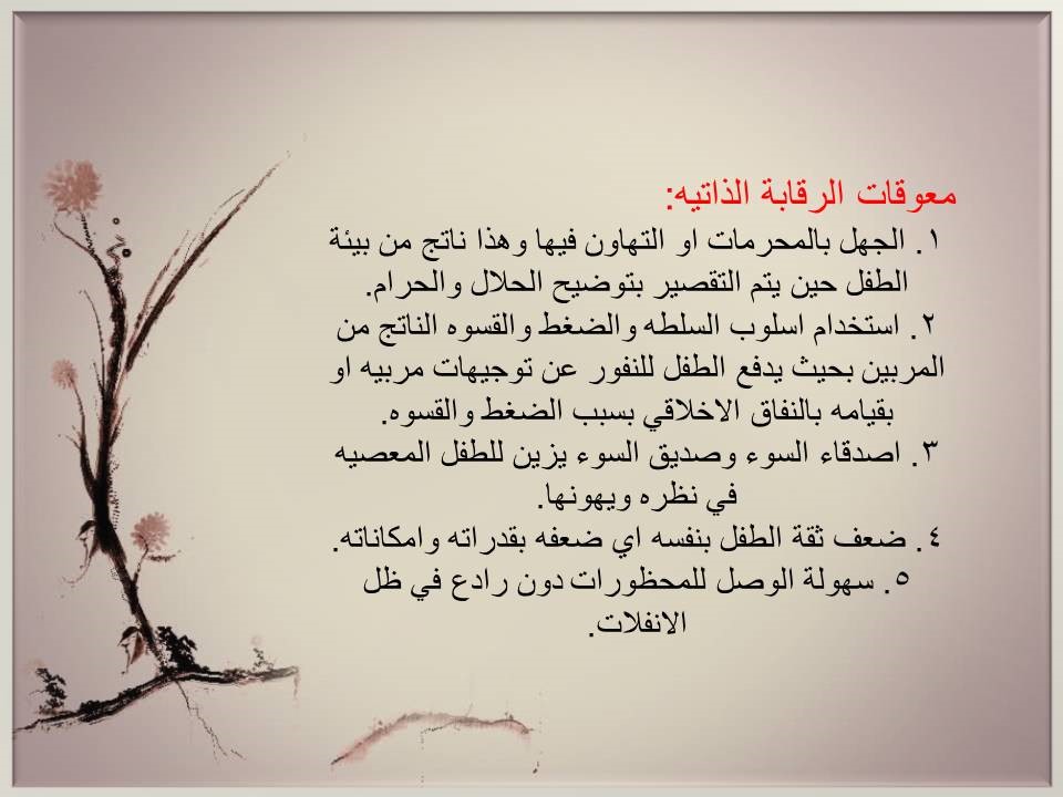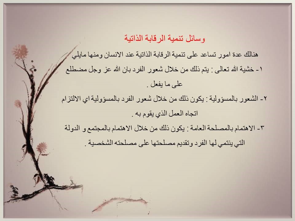 *التعرف على وسائل تعزيز الرقابة الذاتية.