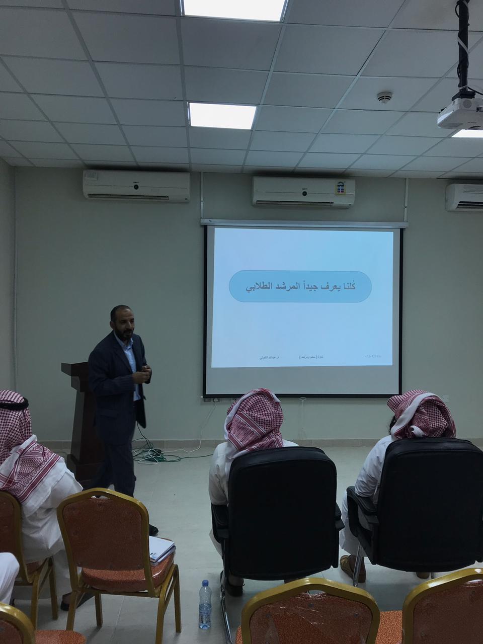 بتوجيهات عميد كلية التربية بوادي الدواسر الدكتور ماجد بن على الشريدة نفذت وحدة الإرشاد النفسي والإرشاد الأكاديمي ندوة بعنوان ( معلم ومرشد )، قدمها الدكتور / عبدالله الخولى أستاذ الصحة النفسية المشارك بقسم العلوم التربوية ، بقاعة التدريب بالكلية