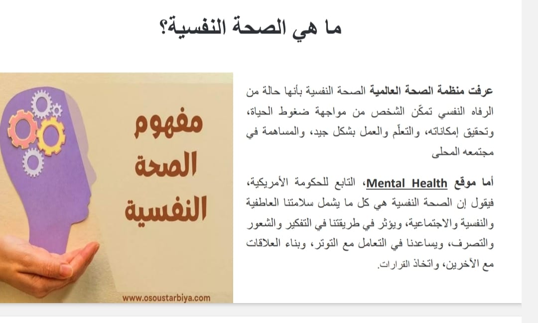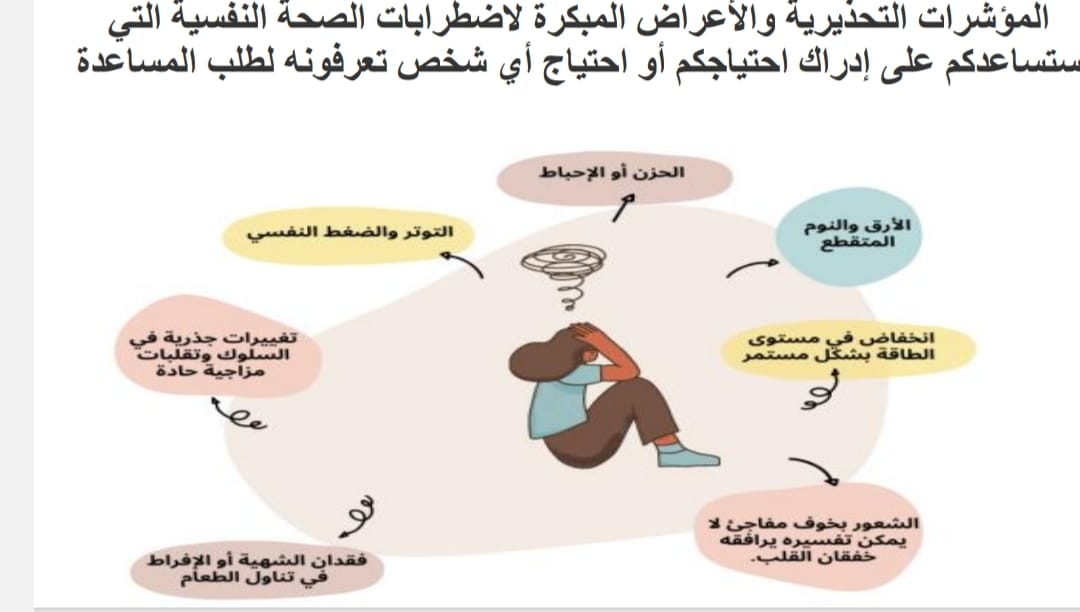 بالاضافة إلى مؤشرات التحذير والأعراض المبكرة لاضطراب الصحة النفسية . و قد تم عرض أهم المشكلات النفسية للطالبات و تاثيرها على التحصيل الدراسى ،