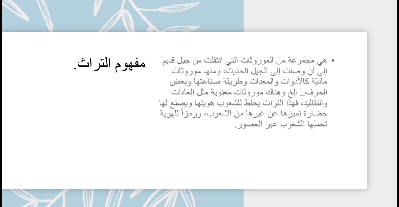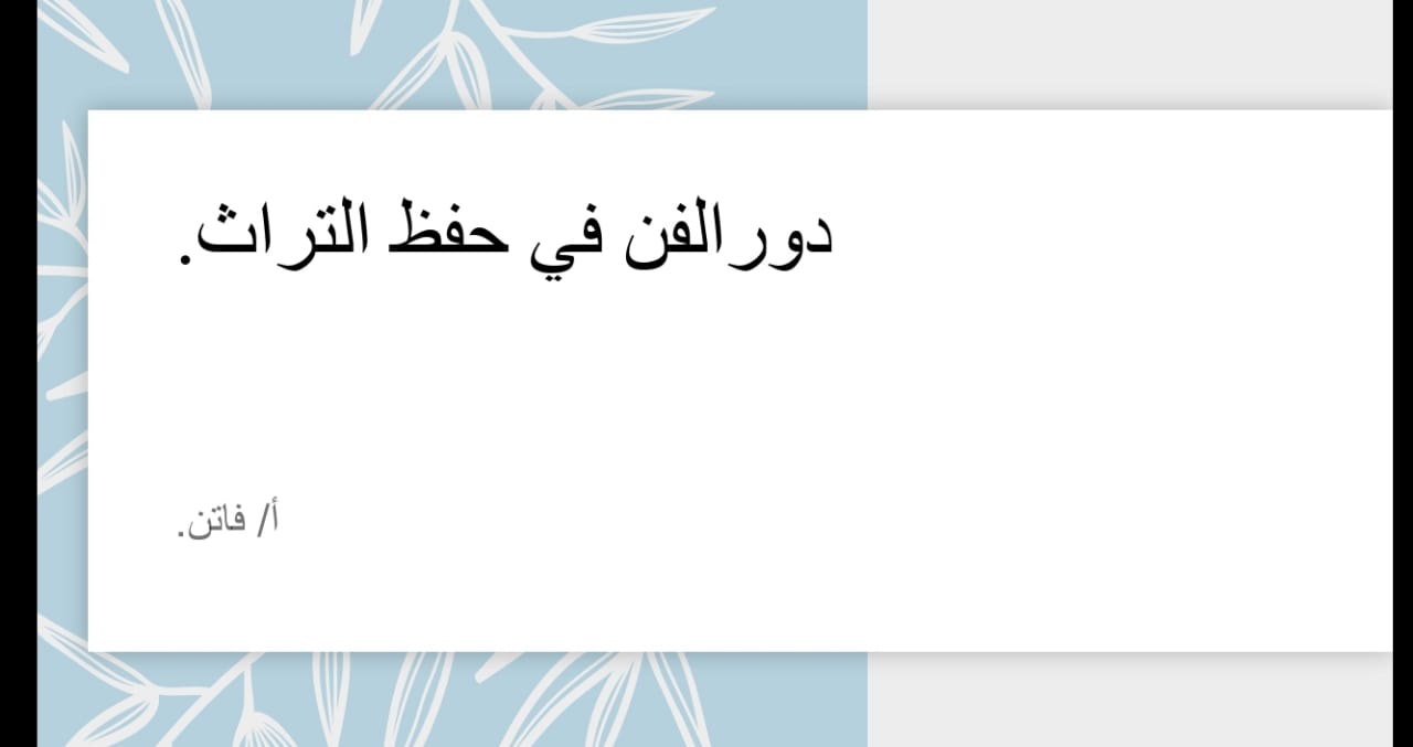 وذلك في يوم الخميس الموافق3/15 في مقر الأندية داخل الكلية، وكانت موجهة إلى الطالبات وأعضاء هيئة التدريس وكل من يهتم بالفن والتراث، وقد هدفت الندوة إلى تبيان دور الفن في الحفاظ على التراث الإنساني ، كما سعت الندوة إلى ترسيخ مفهوم الهوية والحضارة عند الأفراد عن طريق الفن.
