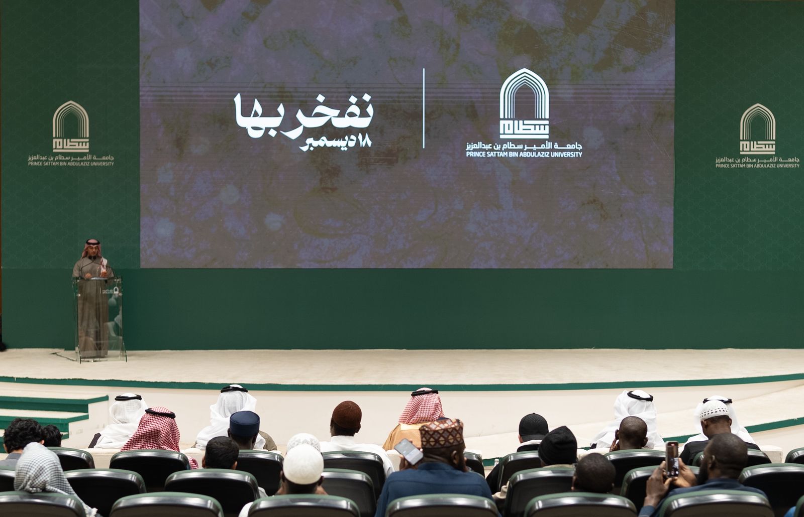 احتفت جامعة الأمير سطام بن عبدالعزيز، ممثلةً بكلية التربية، اليوم الخميس، باليوم العالمي للغة العربية، الذي يوافق الـ 18 من شهر ديسمبر من كل عام، وذلك تحت شعار "نفخر بها"، بحضور وكيل الجامعة للشؤون التعليمية والأكاديمية الأستاذ الدكتور مشاري بن عياد العصيمي.