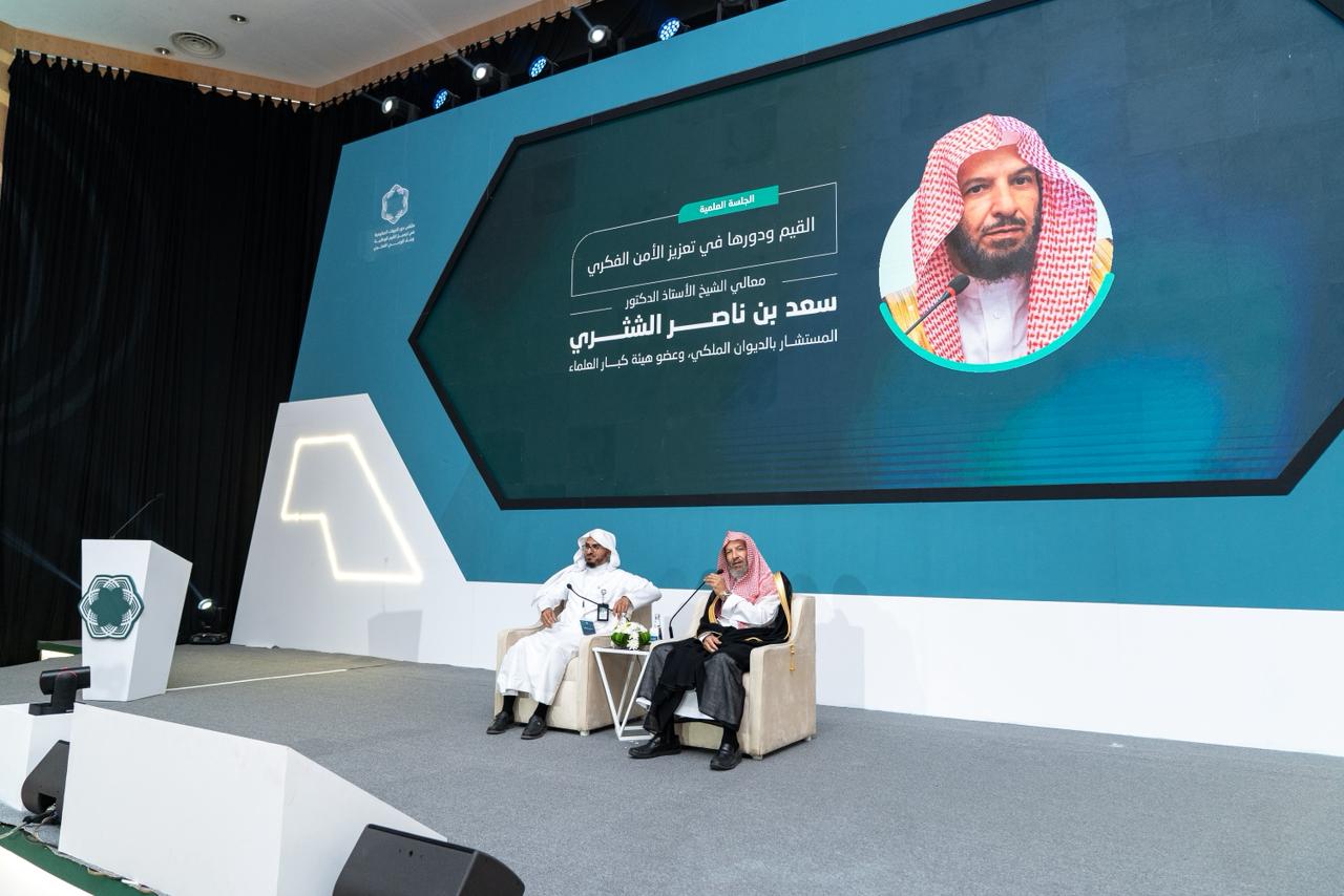 وتضمن برنامج الملتقى جلسة علمية استضافت معالي المستشار بالديوان الملكي وعضو هيئة كبار العلماء الأستاذ الدكتور سعد بن ناصر الشثري، بعنوان "القيم ودورها في تعزيز الأمن الفكري"، إلى ذلك، شهد الملتقى ورش عمل مصاحبة تناولت دور الجهات الحكومية في حماية الفكر وتعزيز الانتماء الوطني، ناقشت عدة محاور أبرزها الوعي الفكري في بيئة العمل، والشراكة بين الجامعات والجهات الحكومية في ترسيخ الأمن الفكري؛ إلى جانب بحث سبل توظيف الذكاء الاصطناعي في تعزيز الوعي الفكري ورصد المخاطر الرقمية.