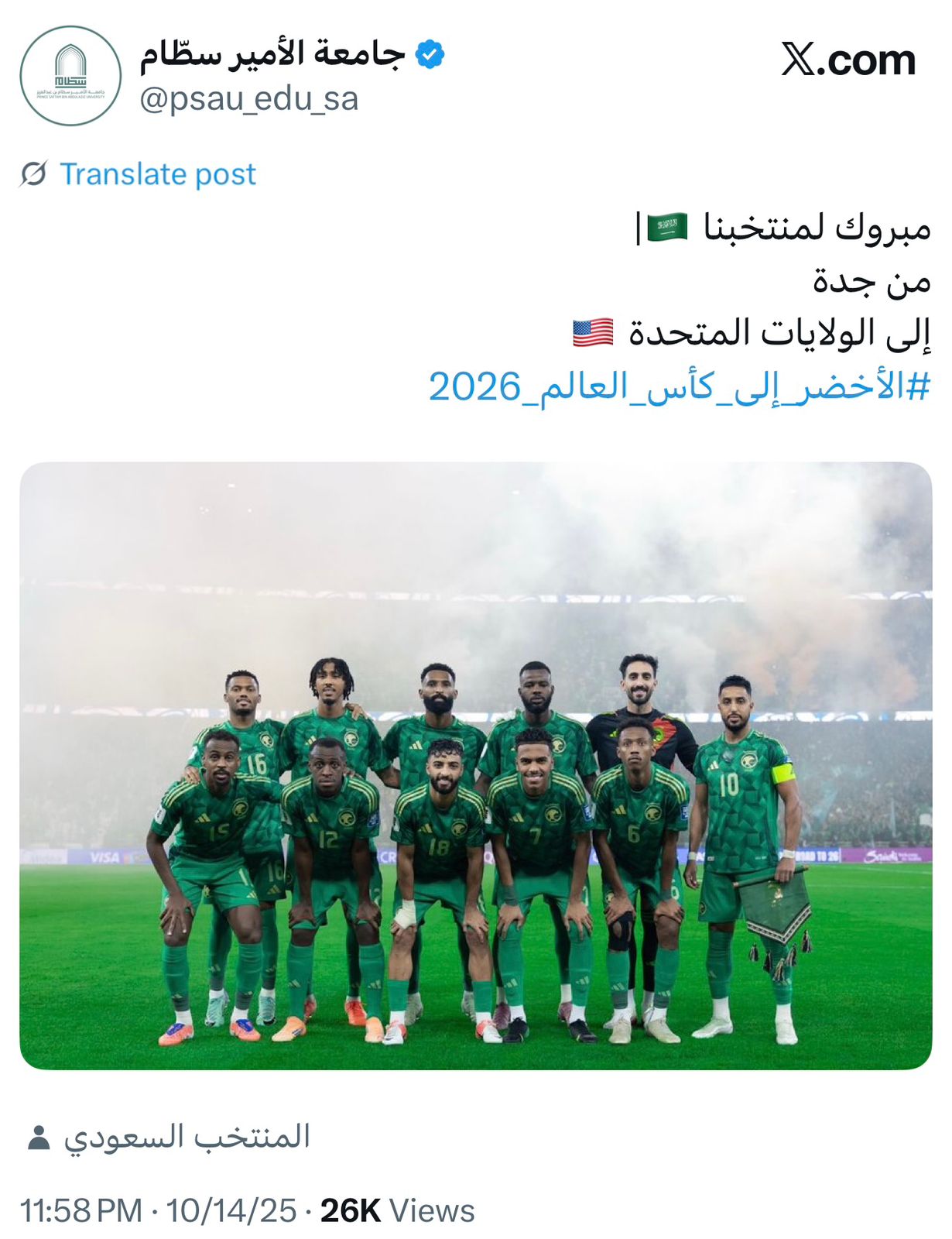 تفاعلت جامعة الأمير سطام بن عبدالعزيز مع الأفراح الوطنية العارمة، بمناسبة تأهل المنتخب السعودي لكرة القدم إلى نهائيات كأس العالم 2026م.