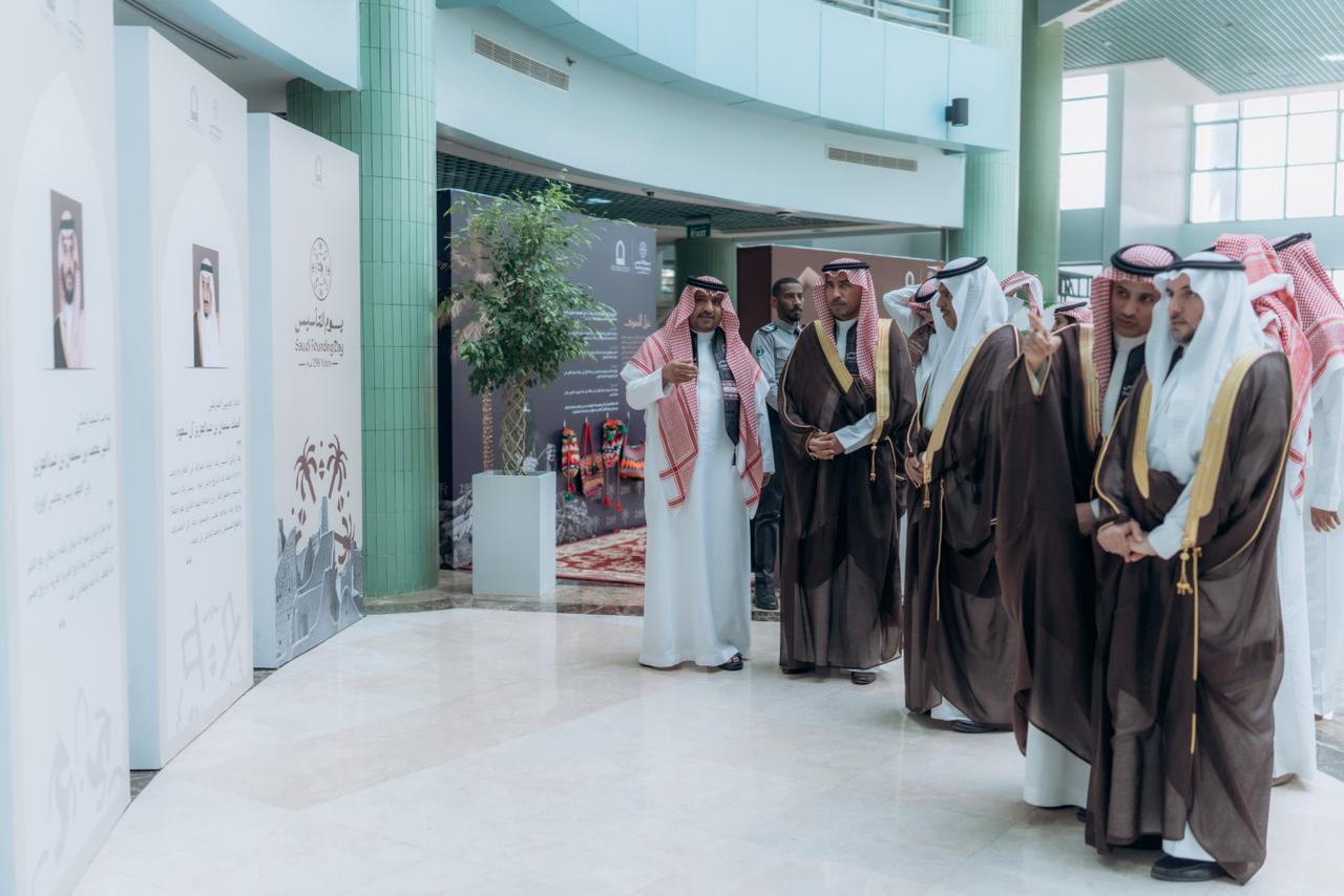 وتضمن المعرض عرضًا تفصيليًا للدليل التاريخي والمعرفي ليوم التأسيس قدمه مدير إدارة العلاقات العامة والهوية المؤسسية استعرض فيه الأسس التاريخية لقيام الدولة السعودية الأولى عام 1727م، والمرتكزات السياسية والاجتماعية التي قامت عليها، إضافة إلى الرموز البصرية ليوم التأسيس ودلالتها الثقافية، وما تحمله من معانٍ تعكس الوحدة والاستقرار والاعتزاز بالجذور.