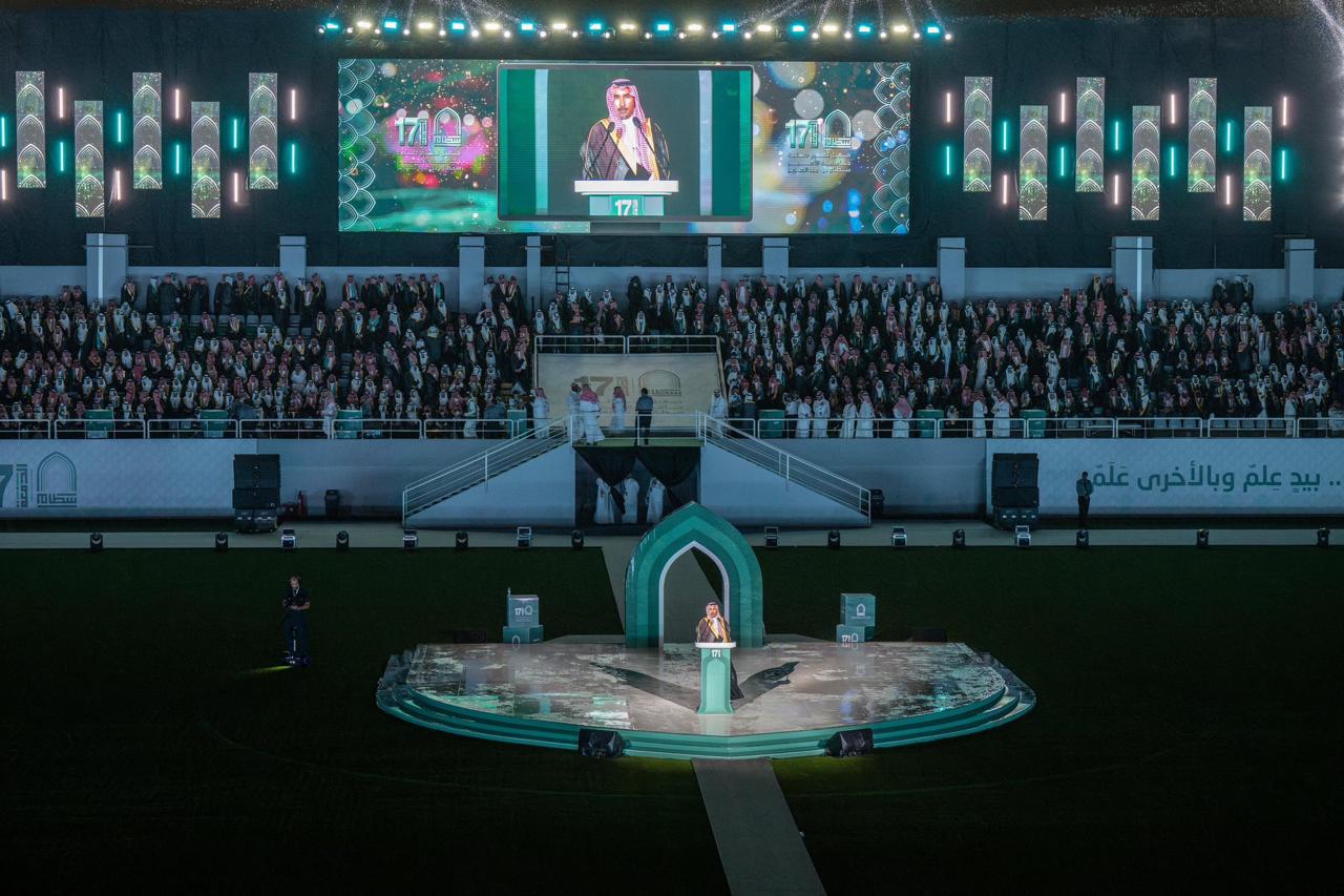 إلى ذلك، انطلقت مسيرة الخريجين في مشهد مهيب يتقدمهم الأوائل والحاصلون على مراتب الشرف؛ حيث رسم الخريجون لوحة من الفخر والاعتزاز تعكس تطلعاتهم للمستقبل في خدمة دينهم ومليكهم ووطنهم، وسط حفاوة من الحضور وقيادات الجامعة.