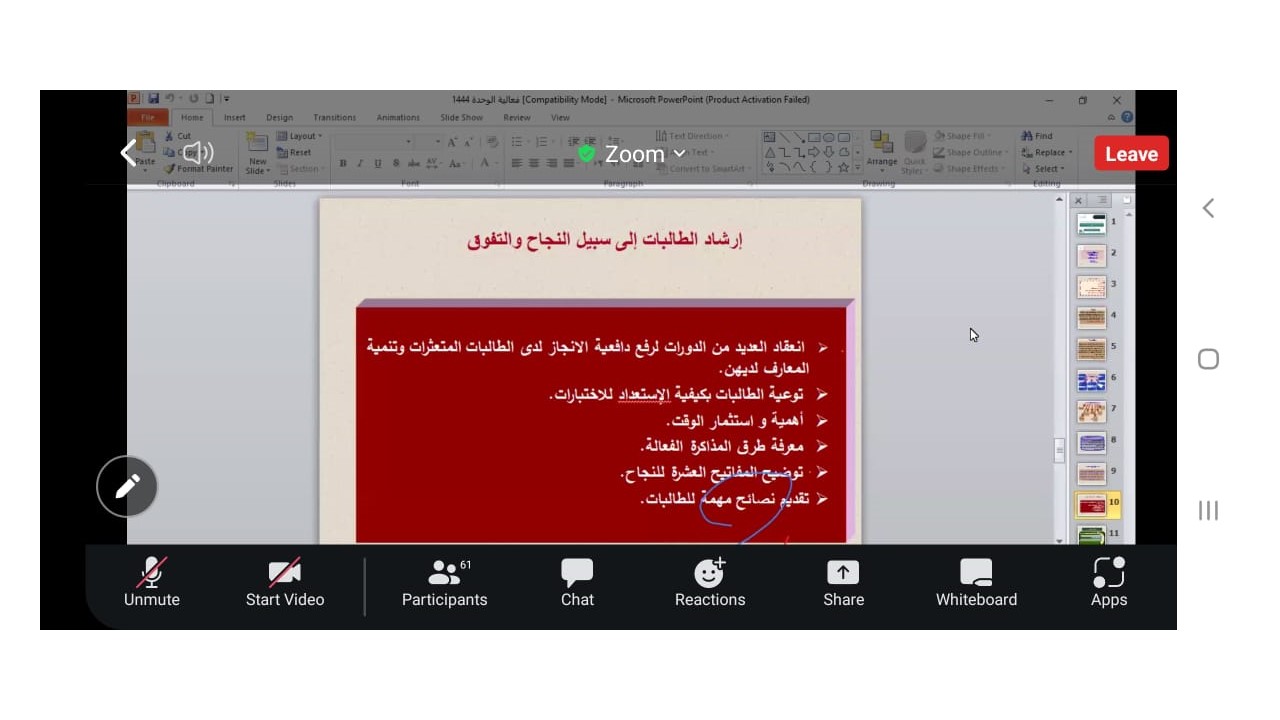 ولأن الطالبة ھى محور العملیة التعلیمیة وغایتھا, ومن أجل توفیر الدعم اللازم لھا أثناء مسیرتھا الأكادیمیة، أقامت عمادة القبول والتسجيل برنامج السنة التحضيرية -قسم الطالبات برنامج تهيئة االطالبات الجدد للفصل الدراسي الأول للعام الجامعي 1445 هـ ومن تنظيم وحدة الدعم الأكاديمي دورة تدريبية عن بعد: بعنوان " نحن معك إلى مسستقبل باهر " يوم الأربعاء الموافق 2/14/ 1445هـ في تمام الساعة الثامنة مساءاً. قدمتها الدكتورة حنان فراج مشرفة الوحدة. حيث اشتملت الدورة على عدة محاور منها. رؤية الوحدة إنها تسعى إلى تحسين مستوى الطالبات ورفع تحصيلهن الدراسي و ذلك بتقديم أعضاء هئية التدريس المحاضرات الإثرائية الإضافية بما یحقق تقدمھن خلال دراساتھن الأكادیمیة . كما وضحت أن هدف الوحدة مساعدة الطالبات وغرس الثقة بالنفس بما یسمح لهن بالتفوق والإجادة. وقامت بتشجيع الطالبات لحضور المحاضرات الإثرائية وأن تساهم الوحدة فى تأصيل حب العلم والأمانة العلمية لدى الطالبات وتوفير أفضل أساليب التعليم للارتقاء. كما تضمنت توعية الطالبات وإرشادهن إلى سبيل النجاح والتفوق , أهمية الوقت واستثماره و الاستعداد للاختبارات لكى تنعم بمستقبل باهر. و بالنهاية شارك الحضور في مناقشة تفاعلية و لاقت الدورة تفاعلا مثمراً.