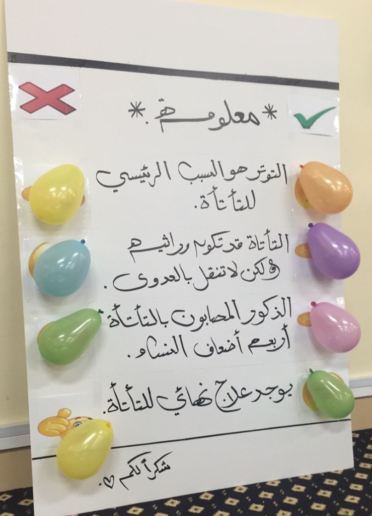 وقد تم توزيع مطويات وبروشورات على الحضور للتعريف بالتأتأة وعن أبرز الشخصيات في العالم التي تخطت هذه المشكلة وفي الأخير تم توزيع دروع شكر وتقدير لكل من ساهم وساعد الطالبة أشواق الزهراني في معاناتها.