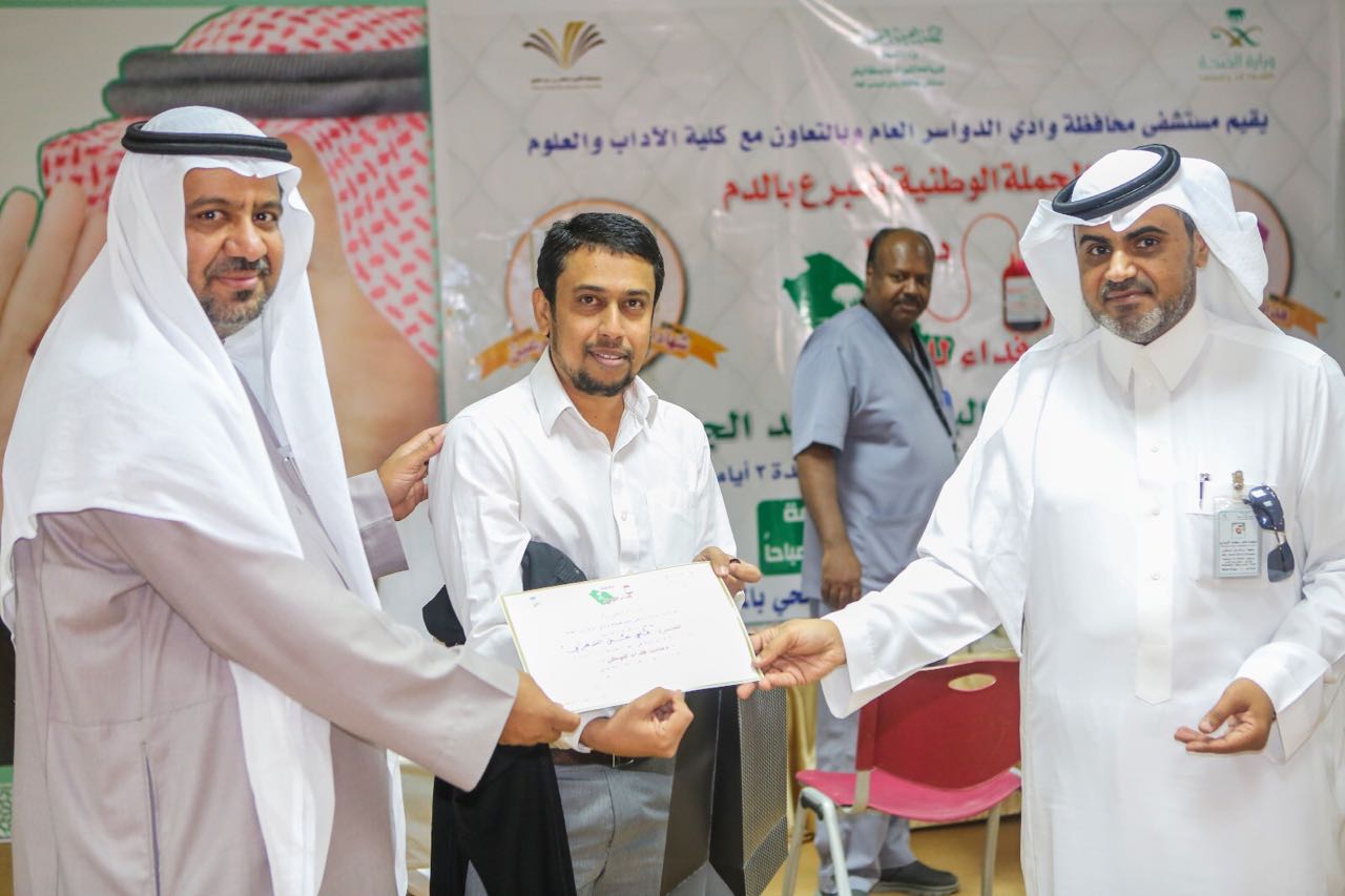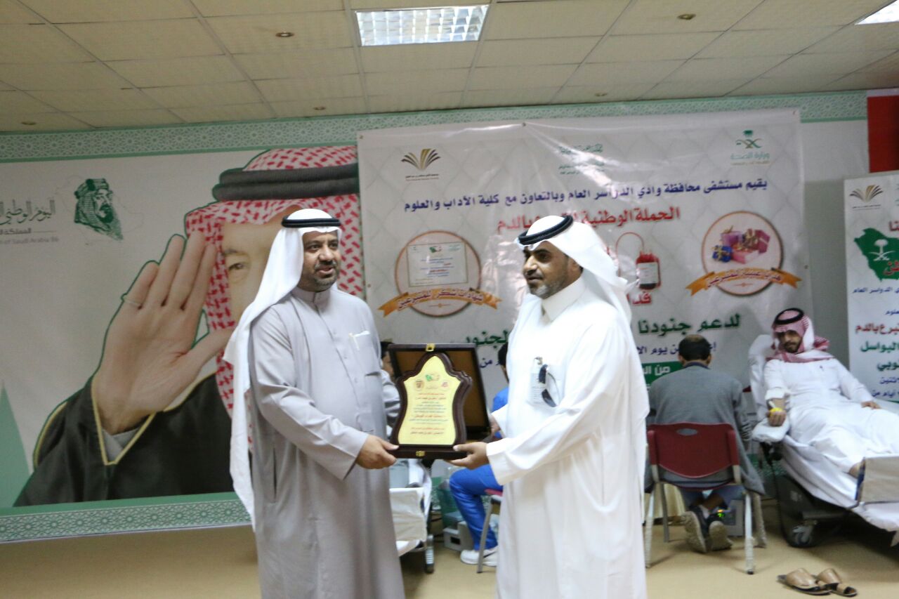 كما أشاد المدرع بالجهود التي قدمها المستشفى العام بالمحافظة لإنجاح هذه الحملة وتحقيقها للأهداف المنشودة مقدماً شكره لمدير مستشفى محافظة وادي الدواسر العام الإخصائي / فهد بن محمد الممخور.