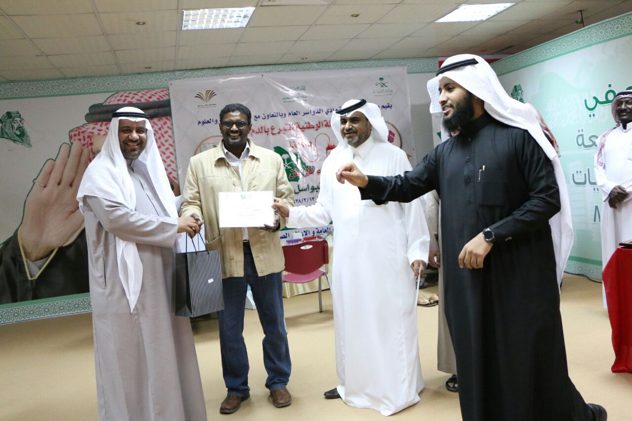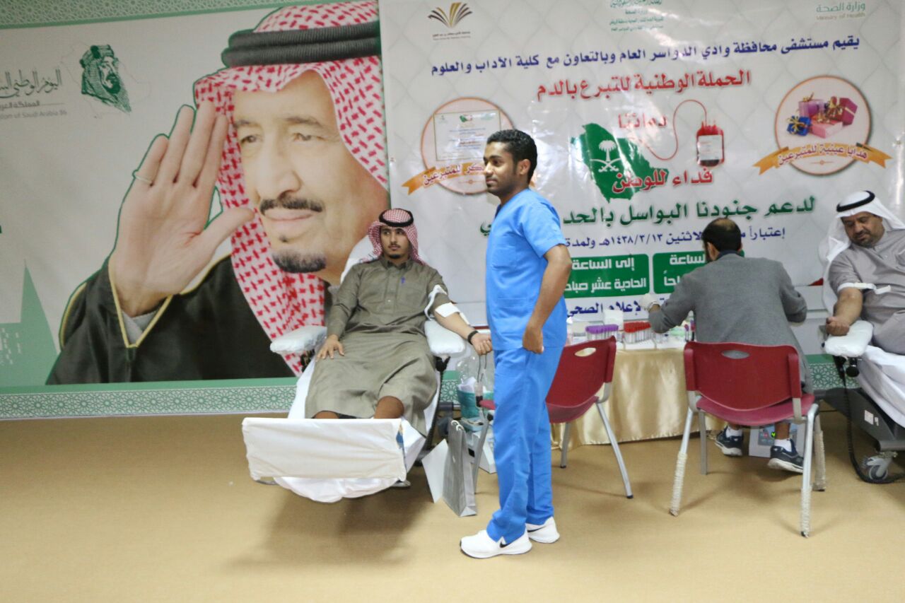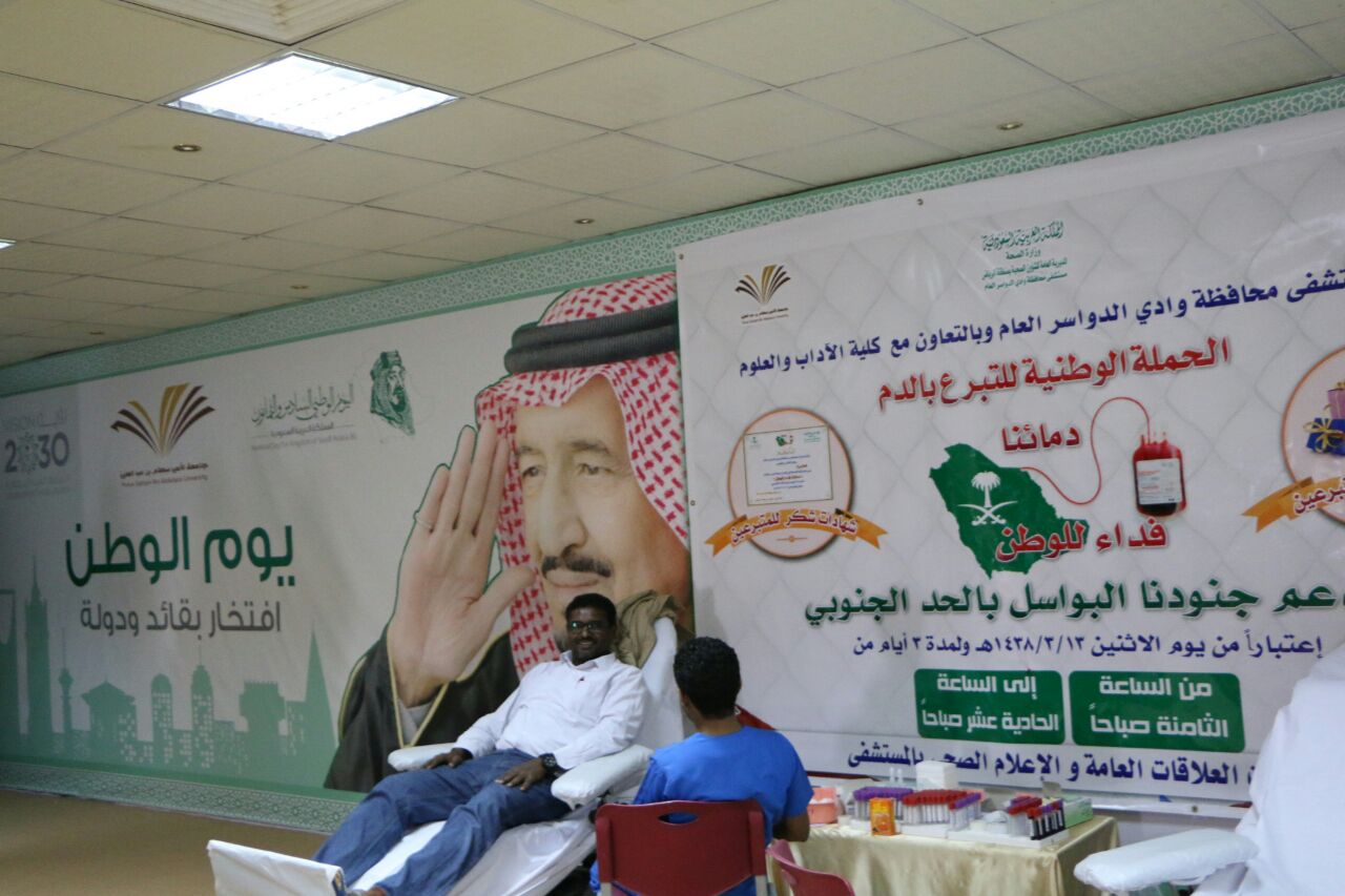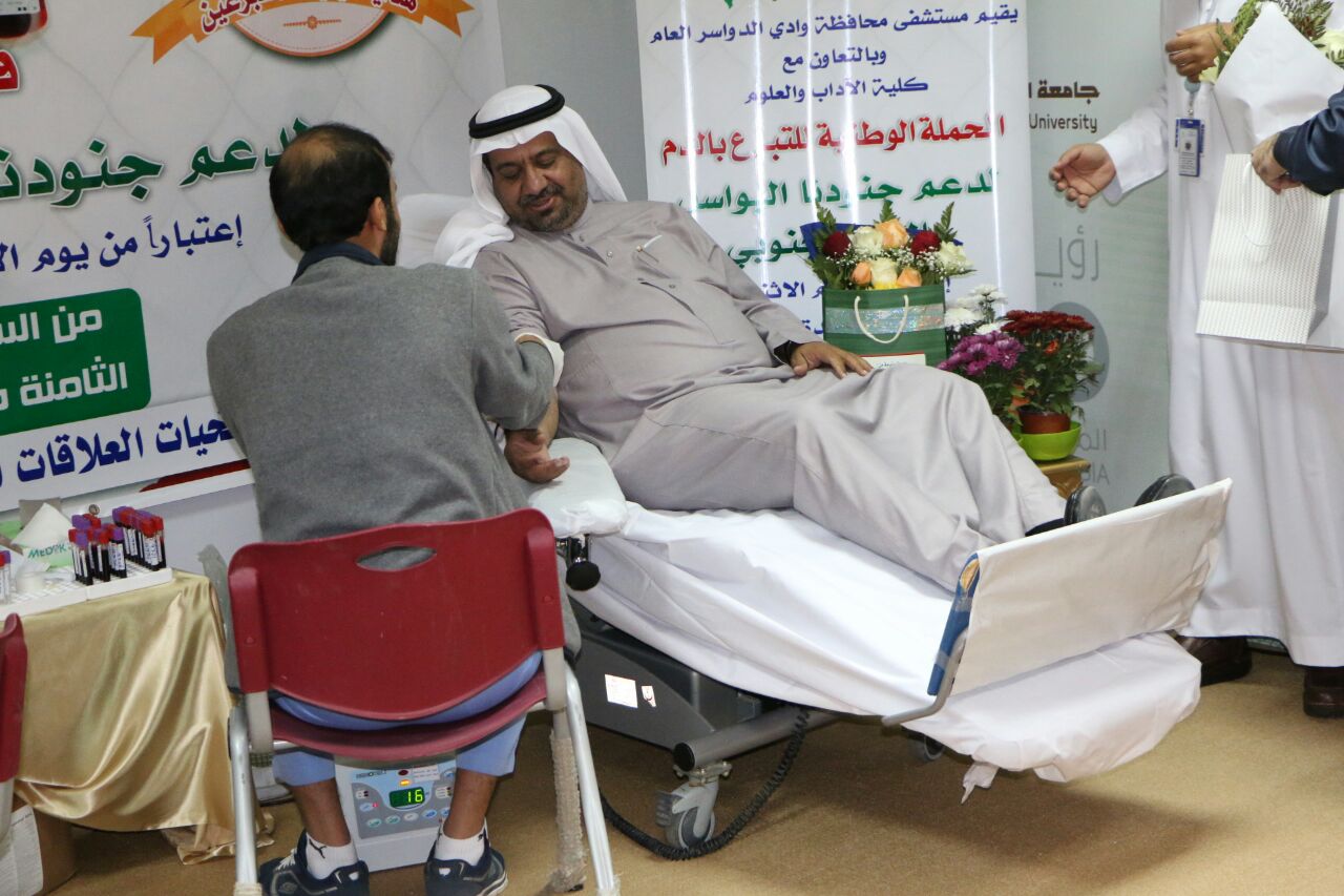أشاد الدكتور سفر بن بخيث المدرع عميد كلية الآداب والعلوم بوادي الدواسر بنجاح حملة من أجل الجميع للتبرع بالدم، والتي نظمتها كلية الآداب والعلوم بوادي الدواسر بالتعاون مع مستشفى العام بالمحافظة، دعما لمساندة القوات المسلحة المواطنين المحتاجين لمثل هذه القطرات، نطلاقا من مبدأ المساعدة الانسانية وروح المواطنة العالية التي تميز بها الشعب السعودي .