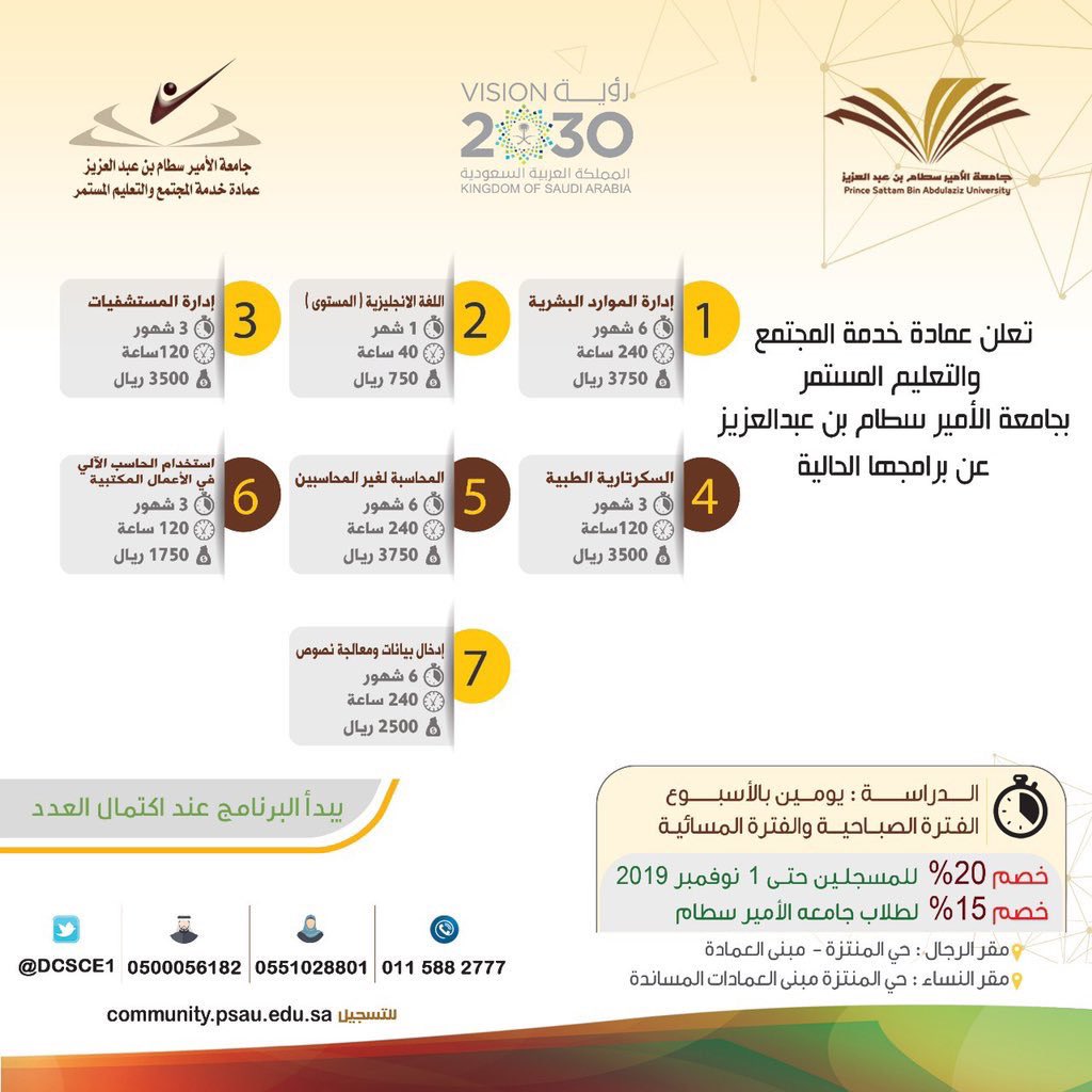 التسجيل متاح على موقع مركز التدريب الجامعي المعتمد تحت إشراف عمادة خدمة المجتمع والتعليم المستمر