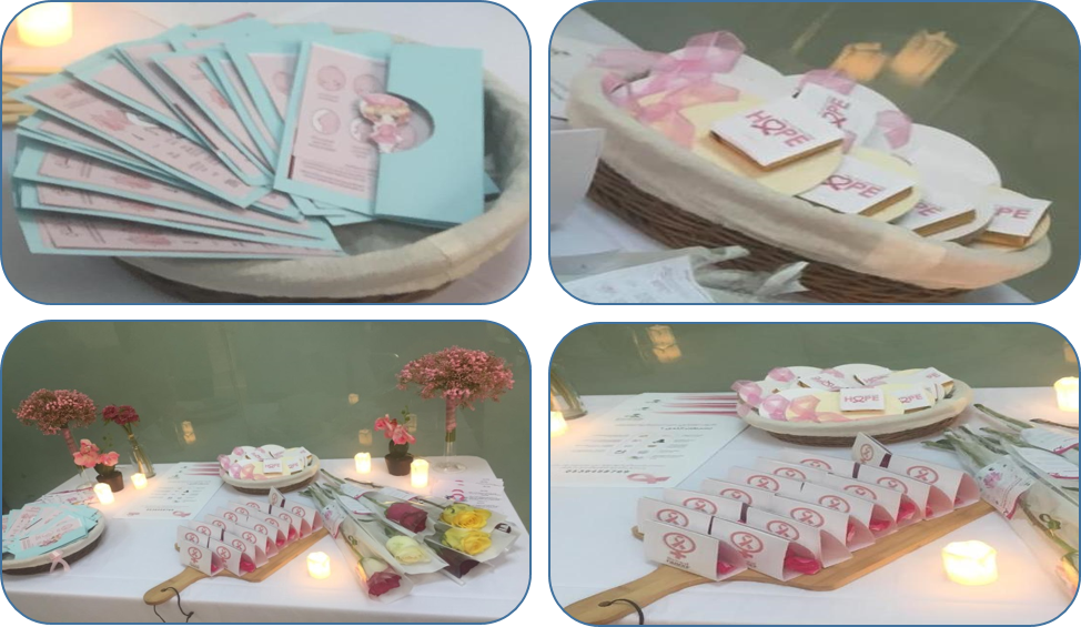 تزامناً مع الشهر العالمي للتوعية بسرطان الثدي, وتفعيلاً لمبادرة الخدمة المجتمعية ( و من أحياها) , تم تنظيم فعالية للتوعية بسرطان الثدي وأهمية الكشف المبكر من قِبل طالبات التمريض المستوى السابع لزوار مركز الرعاية الصحية الأولية في حي الخالدية بإشراف أ. مريم المطيري يوم الأحد الموافق 6/10/2019 وذلك لتوعيتهن بأهمية الكشف المبكر عن سرطان الثدي.