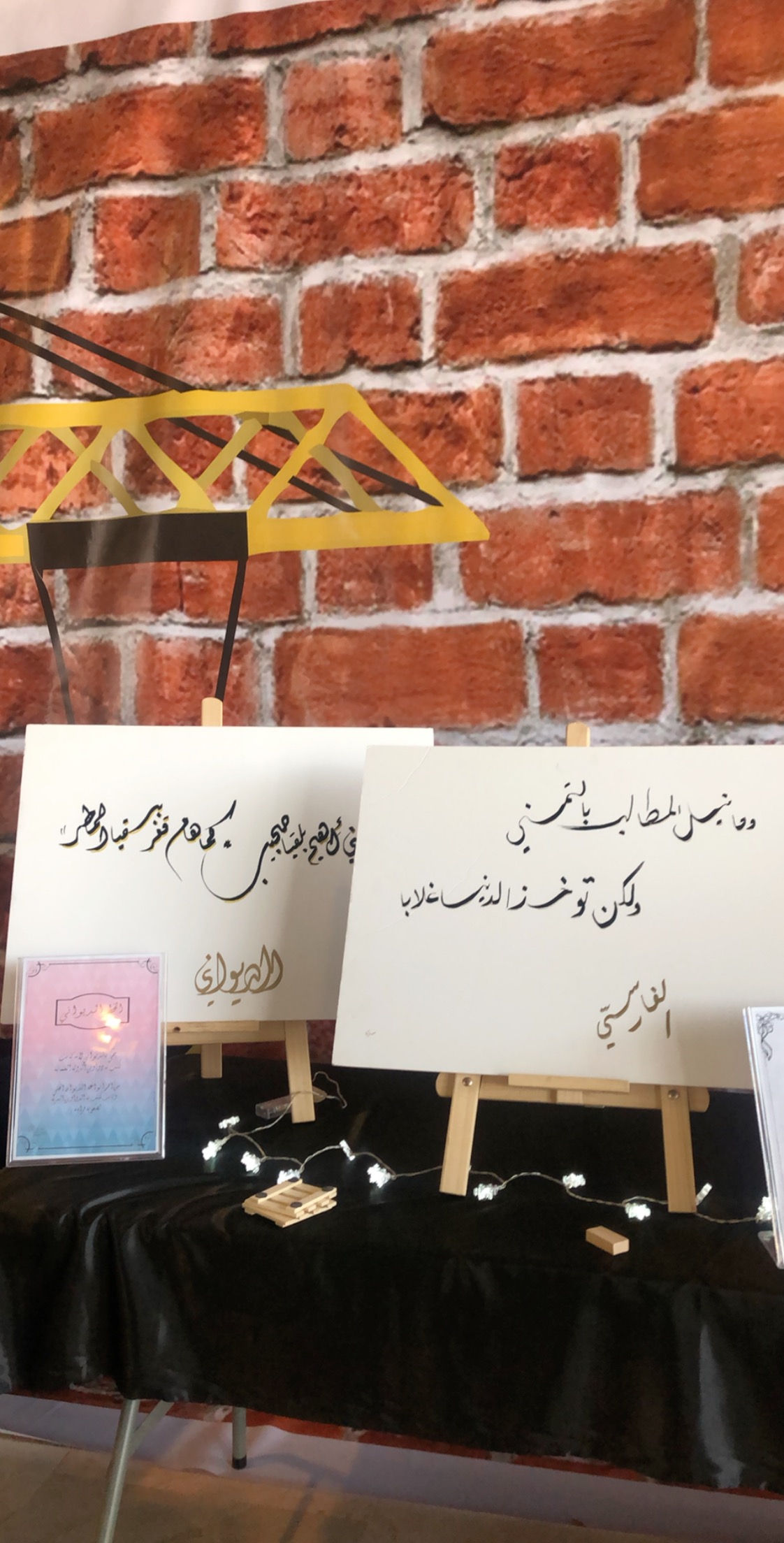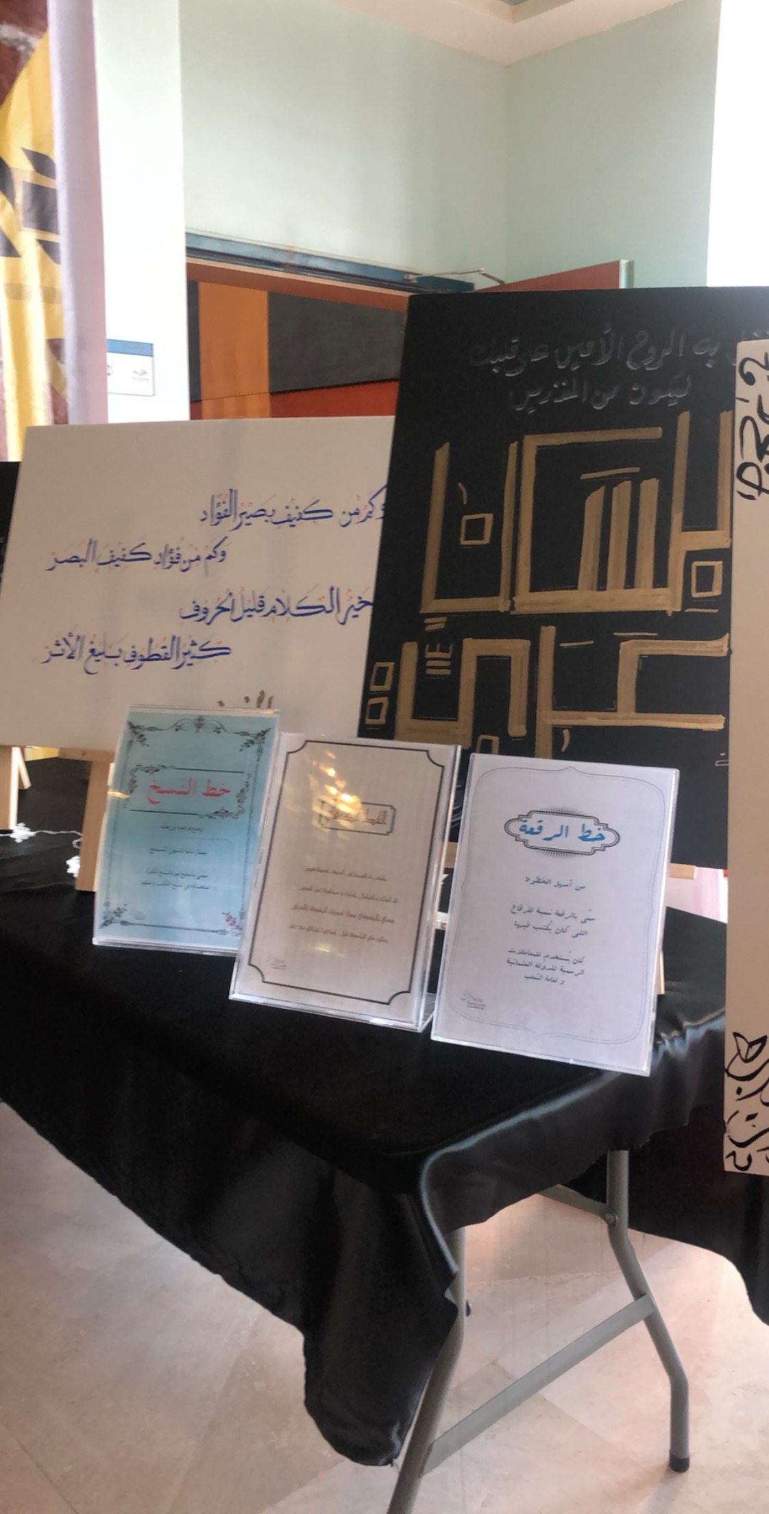 صاحب البرنامج معرضا للخط العربي من ابداع الطالبة: سارّة اليوسف.