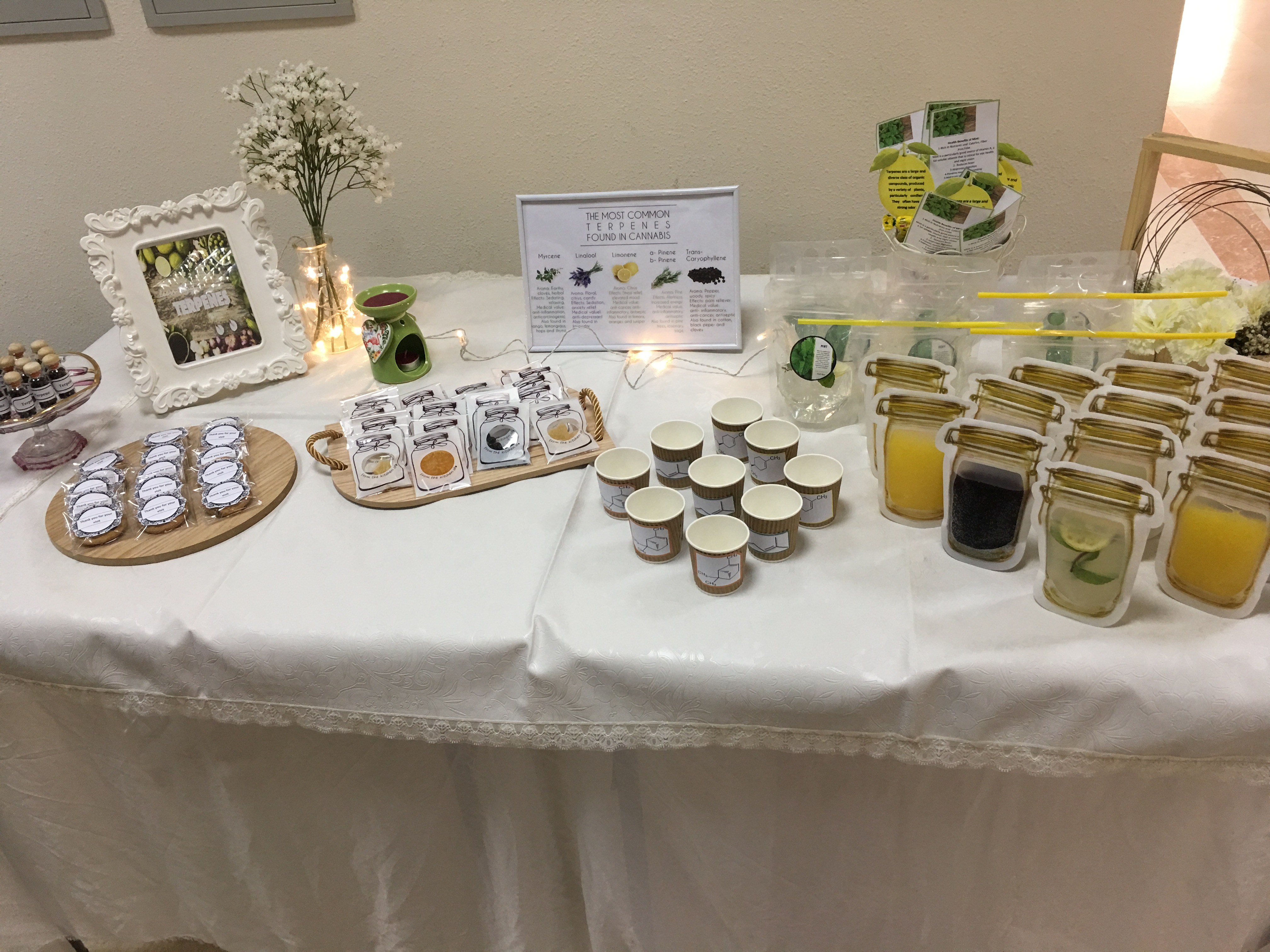 - ركن التربين فقد تم عرض منتجات من الطبيعة تحتوي على هذا المركب منها (النعناع، الليمون، الفلفل الأسود، القرنفل، اللافندر) تستخدم غالبًا هذه المنتجات كمهدئات وفي الزيوت العطرية وتستخدم أيضًا في الأدوية والمبيدات الحشرية.