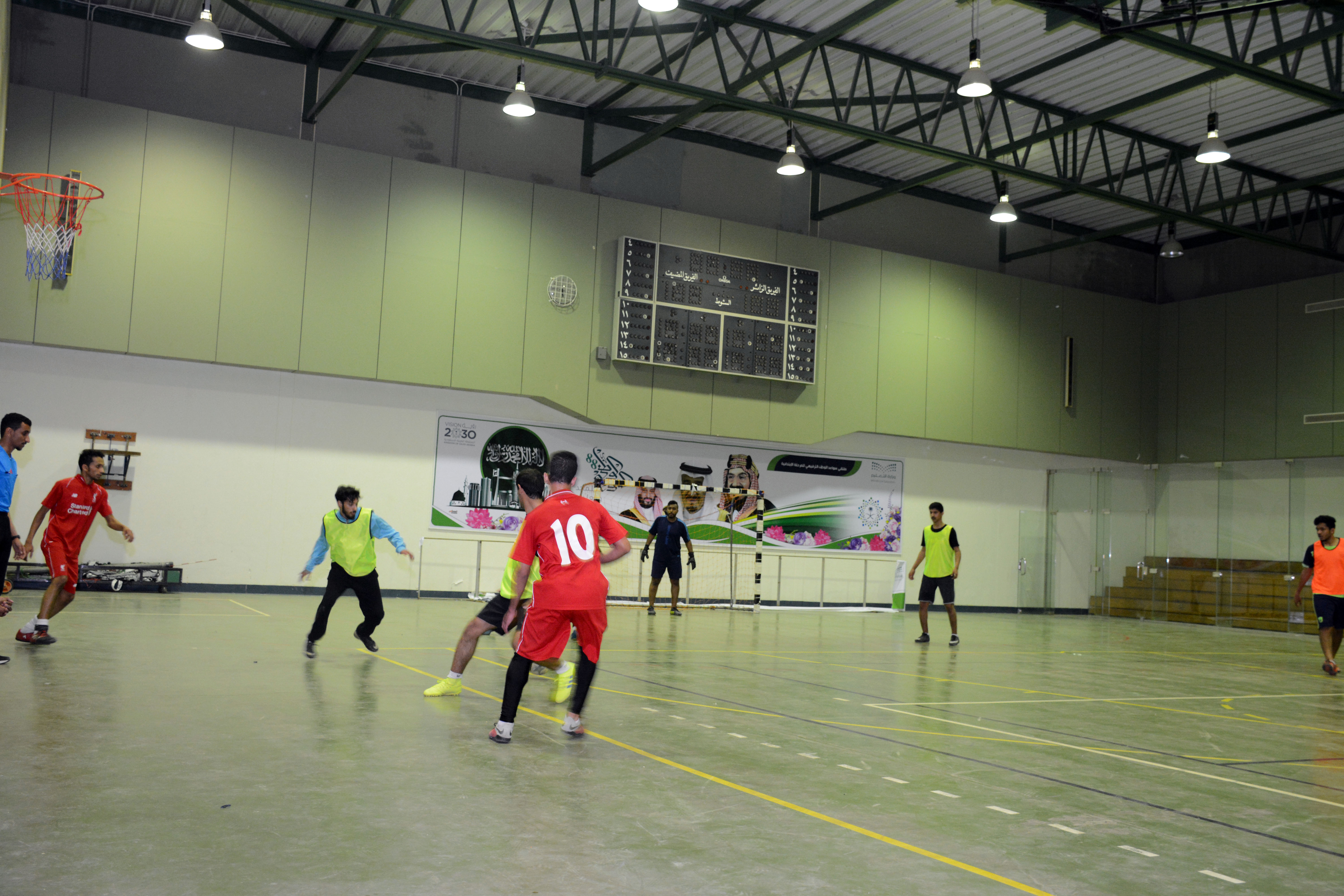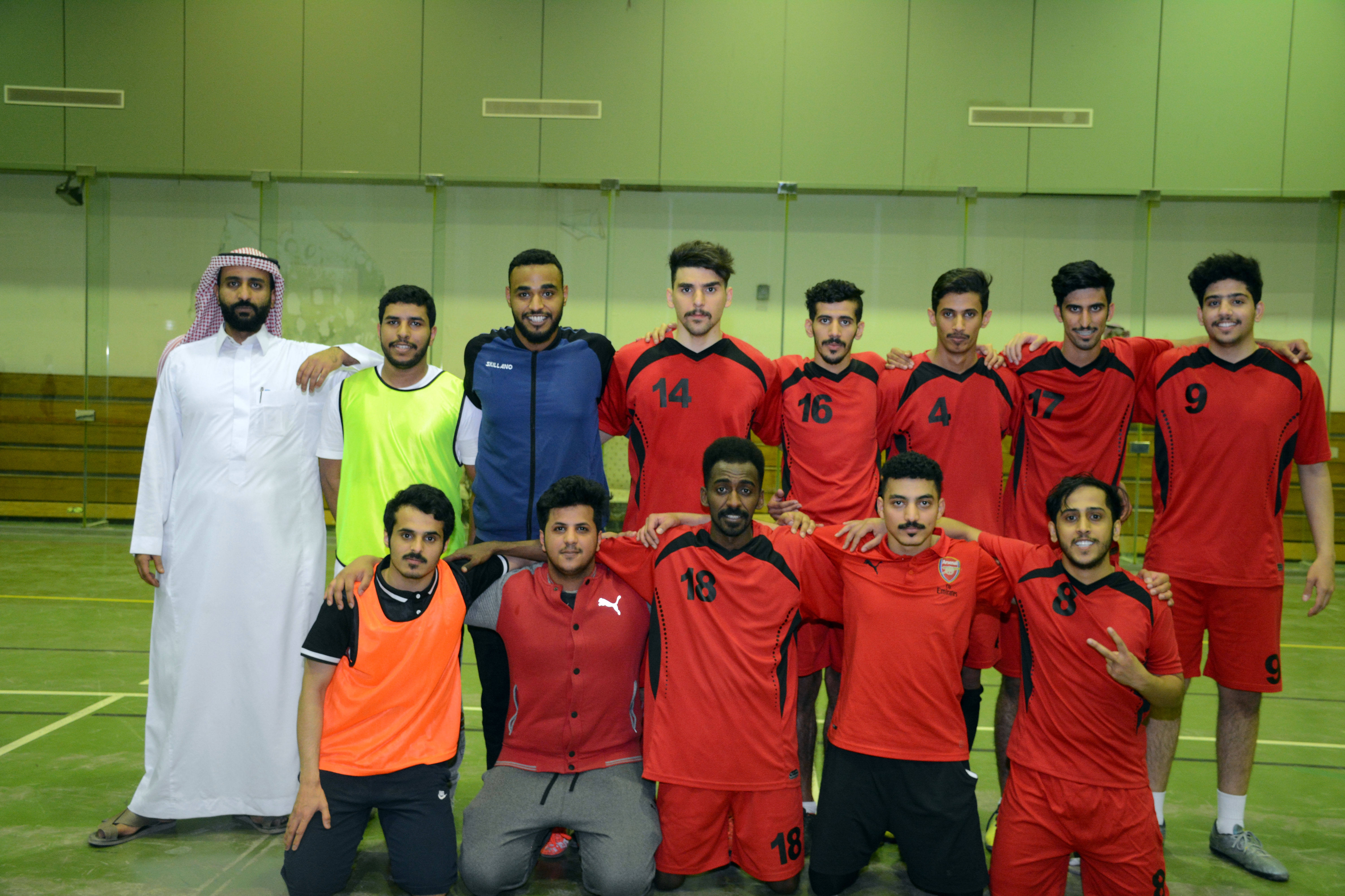 في اليوم الثالث من مباريات بطولة الجامعة لكرة القدم للصالات والتي تنظمها عمادة شؤون الطلاب بالتعاون مع السنة التحضيرية , لعب فريق كلية إدارة الأعمال بحوطة بني تميم مع كلية المجتمع بالخرج وانتهت بفوز الأول بنتيجة 4 / 2.