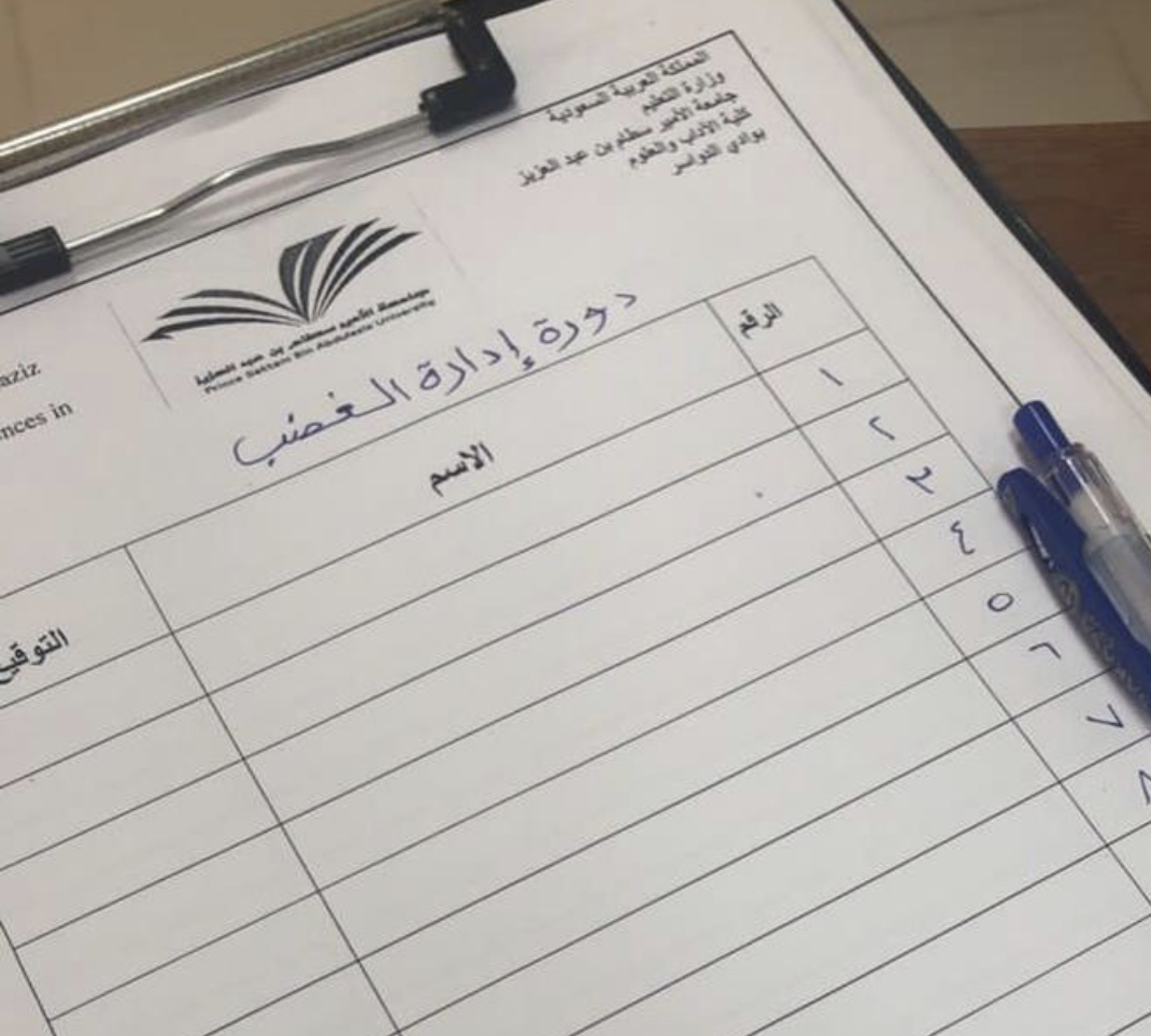 نظم المجلس الاستشاري للطالبات بكلية الاداب والعلوم بوادي الدواسر يوم الاربعاء الموافق ٨/٤/١٤٤٤ دورة تدريبية بعنوان فن ادارة الغضب وذلك برعاية كريمة من سعادة عميد الكلية الدكتور سلطان بن ال ربيع و الدكتوره فارعة الخزاعي وكيلة الكلية وتحت اشراف منسقة المجلس الطلابي الدكتورة غادة طه حيث بدأت الدورة في تمام الساعة العاشرة صباحا بمسرح الكلية وكان الهدف منها تنمية مهارة التواصل لدي الطالبات ومهارة فض النزاعات بينهم من خلال تقديم اهداف الدورة وهو كيفية تجنب الغضب والسيطرة عليه والتحكم في النفس طبقا لتعاليم ديننا الحنيف وامتدت الدورة حتي الساعه الثانية عشر وتم ايضا تجميع المحتوى بشكلٍ جيد وإرسالها الي جميع الطالبات في جميع الاقسام .بالكلية لتحقيق الاهداف المنشودة من الدورة وتوصيلها لجميع الطالبات وقام طالبات المجلس الاستشاري باعدادها وتقديمها وهل رأسهم الطالبه المبدعة مريم عامر