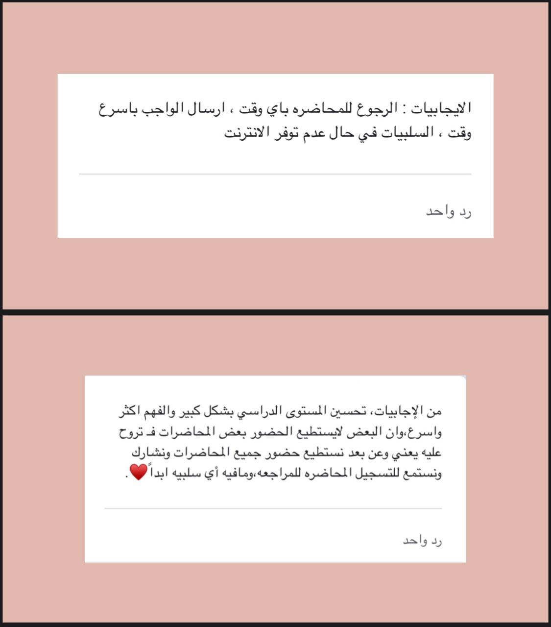 فاعلية بعنوان إيجابيات وسلبيات الكرونا وكان ذلك في تمام الساعة السابعة مساءً عبر شاشة الزووم بحضور عدد كبير من طالبات الكلية ومشرفات الأقسام حيث قامت بدعوتهم طالبات المجلس وقام الطالبات بعرض رائع موثق من خلال استطلاع قاموا به طالبات المجلس بحصر أراء الطالبات في جميع أقسام الكلية عن سلبيات وإيجابيات الكرونا وتطرق ذلك إلى سلبيات وإيجابيات التعليم عن بعد والمقارنة بين التعليم الحضوري والتعليم عن بعد وحصر النتائج من خلال الاستطلاع والنسب المئوية الموثقة أثناء العرض وكان عرض رائع ومتميز أثنى عليه جميع الحضور من طالبات ودكتورات وتم اختتام العرض بكلمة لمنسقة المجلس الطلابي الدكتورة غادة طه وشكرها للطالبات وعلى رأسهم الطالبة ميساء وقمر اللذين قاموا بإعداد الفاعلية بشكل متميز وواقعي .