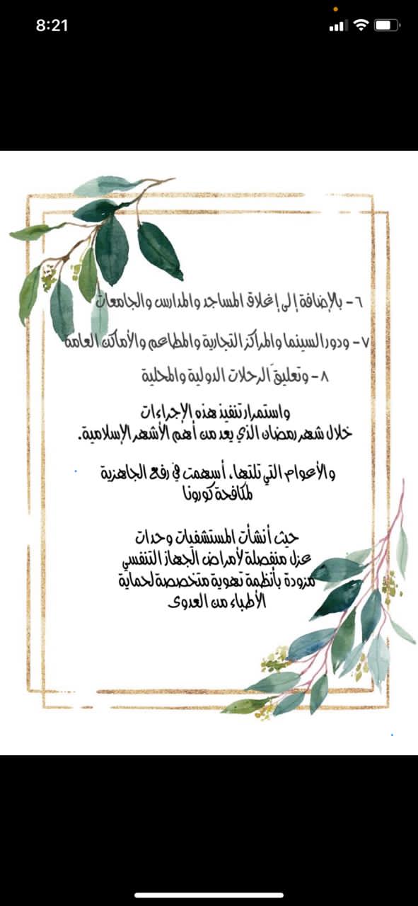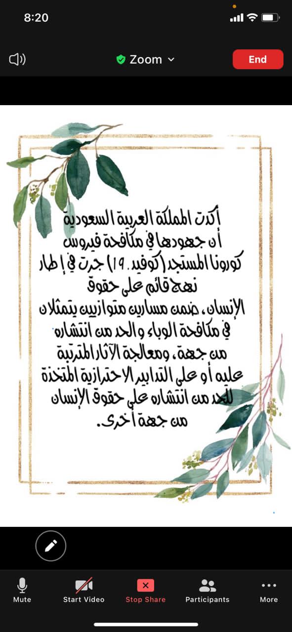 تحت رعاية عميد كلية الآداب والعلوم بوادي الدواسر الدكتور عمر المطيري ووكيلة الكلية الدكتورة رفعة دحيم نظم المجلس الاستشاري للطالبات الثلاثاء الموافق ١٧/٨/١٤٤٢ تحت إشراف منسقة المجلس الاستشاري الدكتورة غادة طه ورشة عمل بعنوان (جهود المملكة العربيةالسعودية المميزة في مكافحة وباء كوفيد-١٩) وكان ذلك في تمام الساعة الثامنة مساءً عبر شاشة الزووم بحضور عدد كبير من الطالبات وأعضاء هيئة التدريس بجميع أقسام الكلية واشتملت ورشة العمل على ايضاح الجهود الكبيرة التي قامت بها المملكة في مكافحة الوباء في اطار نهج قائم على حقوق الإنسان ضمن مسارين متوازيين يتمثلان في مكافحة الوباء والحد من انتشاره من جهة ومعالجة الآثار المترتبة عليه أو على التدابير الاحترازية المتخذة للحد من انتشاره من جهة أخرى وفي نهاية الورشة ألقت الدكتورة غادة طه كلمة ختامية تقدمت فيها بالشكر لجميع الحضور وعلى رأسهم الطالبة بيادر التي قامت بإعداد وتقديم الورشة و أثنت أيضاً على دور الوطن والقيادة الحكيمة بالمملكة في مواجهة الوباء بشكل فعال.