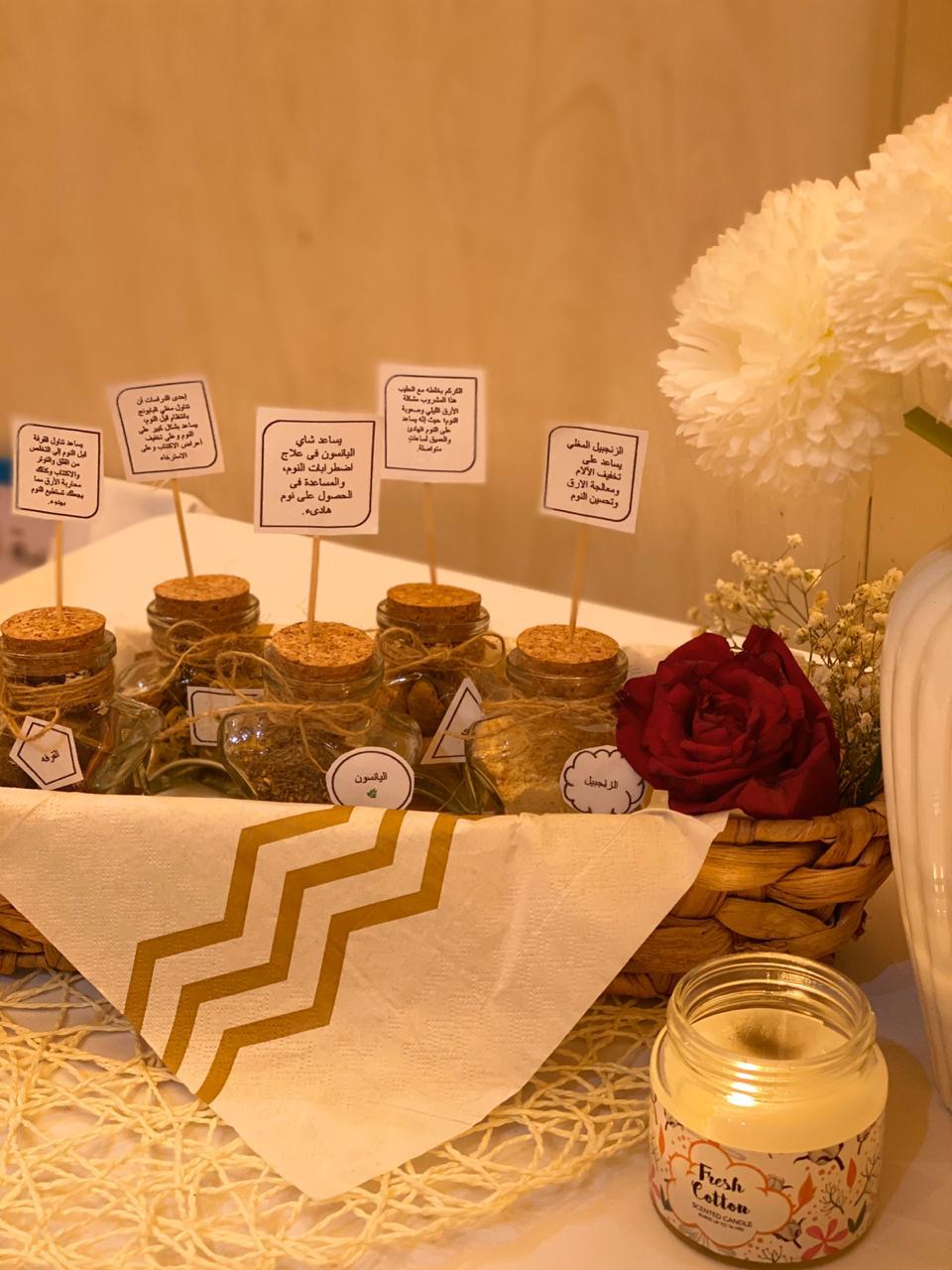 كما تم عرض بعض الأعشاب التي تساعد كثيراً على تهدئة الأعصاب وخاصة بهذه الفترة مثل شراب البابونج واليانسون والقرفة والزنجبيل وغيرهـا.