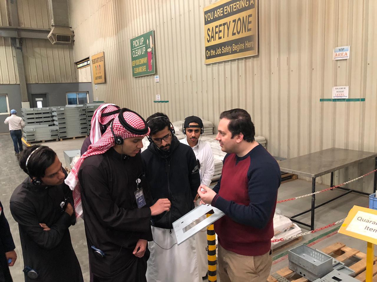 شملت الجولة عدداً من مصانع الشركة منها مصنع المحولات ومصنع الكابلات ومصنع لوحات الجهد المنخفض والمتوسط بالإضافة لمصنع الأفياش والمفاتيح الكهربائية.هذا وقد أعرب الطلاب عن إعجابهم بمستوى تقنيات التصنيع القائمة في المصانع وعمليات الاختبار التي تجرى على المنتجات قبل نزولها للأسواق بالإضافة لمستوى أجهزة الاختبار النوعية الموجودة في مختبرات الشركة والتي أهلتها لتكون مختبرات معتمدة لدى الهيئة السعودية للمواصفات والمقاييس للمنتجات الكهربائية