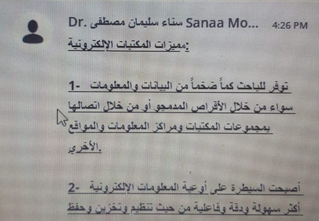 وتم ذكر أهمية المكتبات الرقمية: