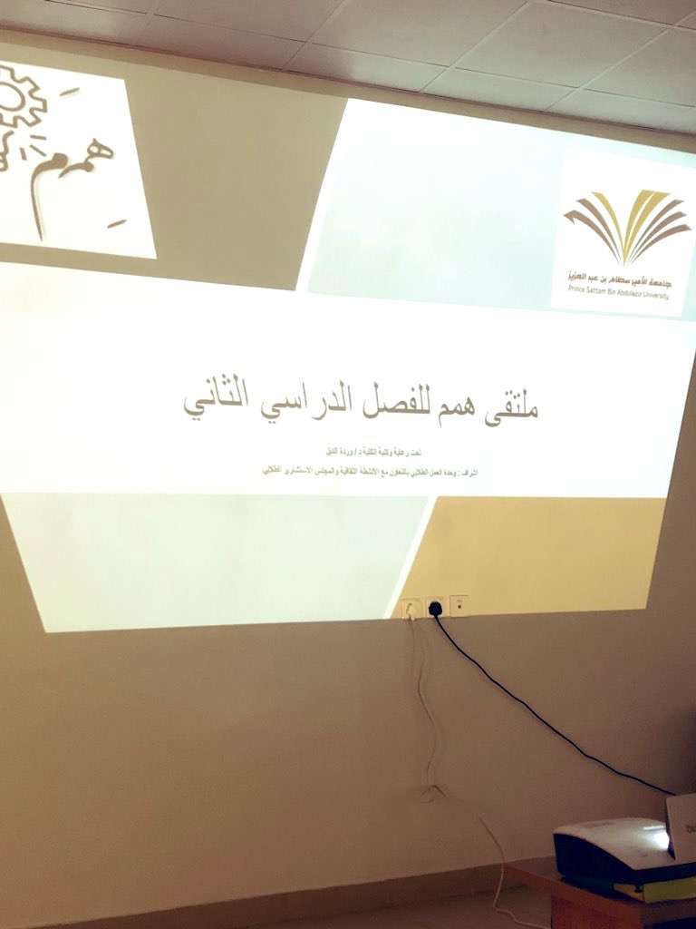 - نظمت وحدة العمل الطلابي بقسم الطالبات بكلية إدارة الأعمال بالخرج افتتاح ملتقى همم الثاني لريادة الأعمال.