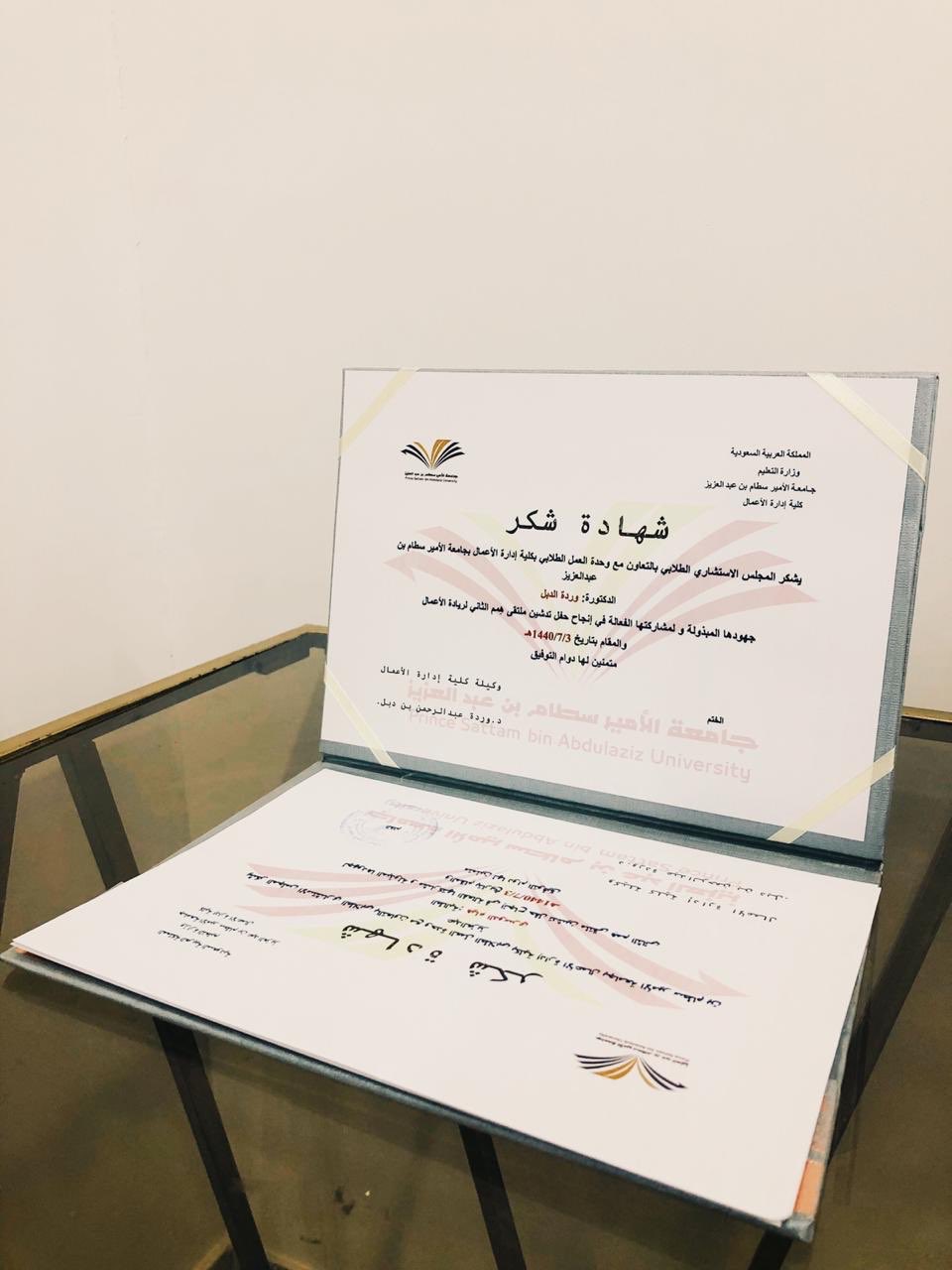 تحت رعاية الدكتورة وردة الدبل وكيلة كلية إدارة الاعمال نظمت وحدة العمل الطلابي بالتعاون مع الأنشطة الثقافية والمجلس الاستشاري الطلابي تدشين ملتقى ( هِمم ) للفصل الدراسي الثاني الذي يحمل شعار ( رُبّ هِمّة أحيت أمة) يوم الأحد الموافق ٣ / ٧/ ١٤٤٠ هـ بحضور مديرة مكتب وفاء بتعليم الخرج الأستاذة فاطمة الصويغ و مشرفة المجالس الطلابية بالجامعة الأستاذة حنان آل عبدالقادر وبحضور عدد من أعضاء هيئة التدريس و الموظفات، وطالبات الكلية.