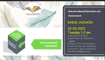 نظمت وحدة التطوير والتميز بالتعاون مع قسم الكيمياء بكلية الآداب والعلوم للبنات بوادي الدواسر يوم الثلاثاء الموافق 2 مارس 2021 ورشة عمل تحت عنوان "التعليم القائم على تقييم النتائج".