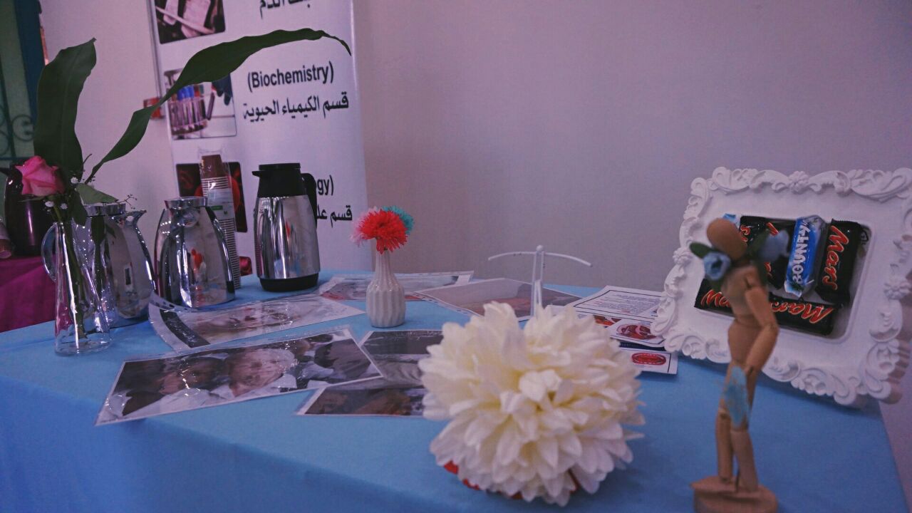 كان الركن الأول بعنوان (Blood bank) الهدف منه اكتشاف فصائل الدم للطالبات المتقدمات للاختبار . والركن الثاني بعنوان (hematology) حيث قدم فيه مطويات تحوي صفات صاحب كل فصيلة وبعض الشروحات عن الأغذية والرياضات المناسبة لكل فصيلة ومقادير الحصص الغذائية اليومية في الهرم الغذائي وقدمت مطويات تدعم الركن علمياً بالإضافة إلى المجسمات التي توضع الحصص اليومية ومجسم الهرم الغذائي . والركن الثالث (biochemistry) حيث تحدث هذا الركن عن مجموعه من الفيتامينات المهمة مثل الكالسيوم وفيتامين د والحديد وأهمية هذه الفيتامينات التي يكثر نقصها عند الأغلب وبعض الطرق لتفادي ذلك النقص وبعض الأغذية التي تساعد في زيادة معدل تلك الفيتامينات . والركن الرابع (genetics) تحدث فيه عن مرض المهق ووثق ذلك المرض ببعض الصور والشروحات التي توصل الفكرة لعقل المتلقي . أما الركن الخامس كان (Microbiology) حيث تحدث فيه عن مرض خدش القطة ومرض القوباء الناجم من ملازمة القطط ووثق هذا الركن بالمطويات والصور والشروحات .