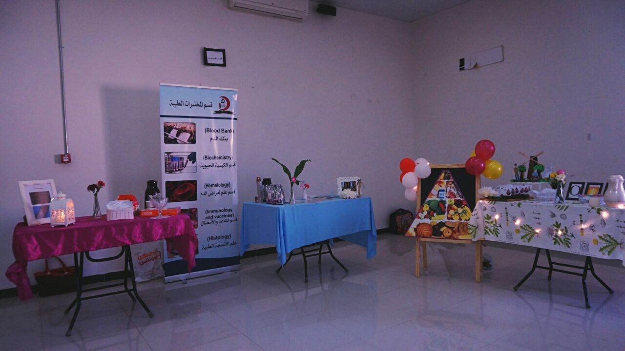 أقام نادي المختبرات الطبية بكلية العلوم الطبية التطبيقية يوم الاربعاء الموافق 23 /2 / 1438هـ نشاط بعنوان our lab ) – مختبرنا ) بإشراف الدكتورة : آلاء الطيب والذي كان عبارة عن أركان مختلفة يبلغ عددها خمسة أركان كل ركن يتحدث عن مرض أو اختصاص معين في المختبر .