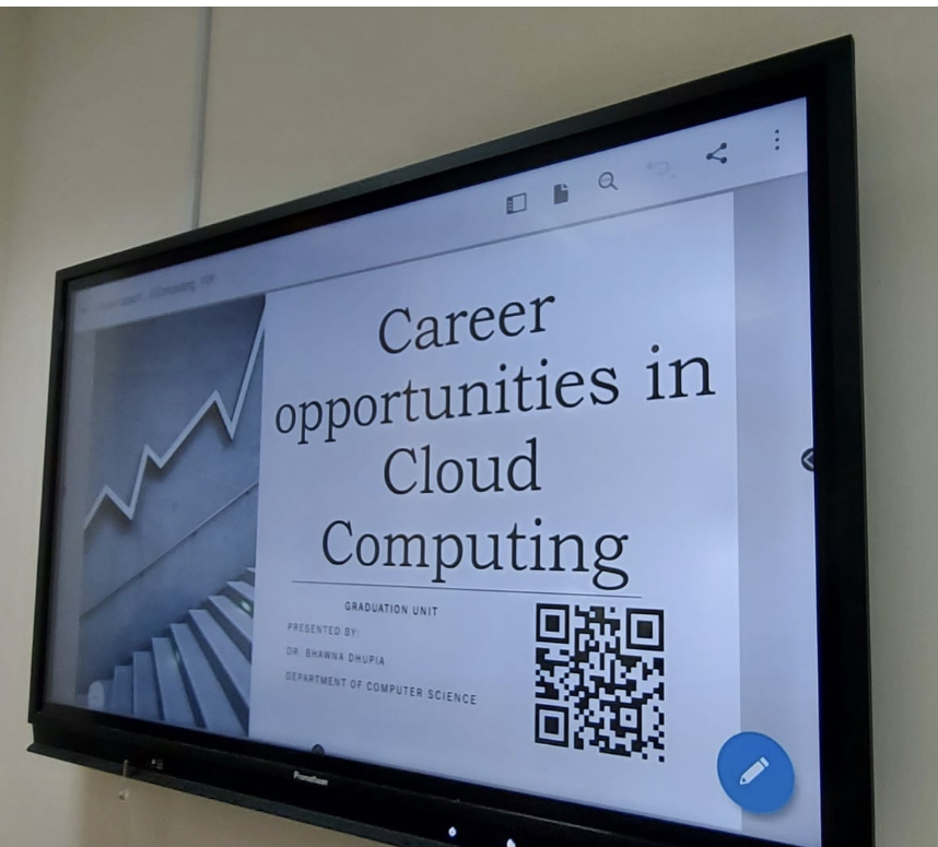 قامت وحدة الخريجات ممثلة بمجال تنمية المهارات المهنية بكلية الاداب والعلوم بوادي الدواسر، بعقد دورة بعنوان ." Career Opportunities in Cloud Computing ". وذلك يوم 20/2/2022وكانت الدورة موجهة للطالبات المتوقع تخرجهن. قدمت الدورة Dr. Bhawna Dhupi المحاضر بقسم الحاسب بالكلية. هدفت الدورة