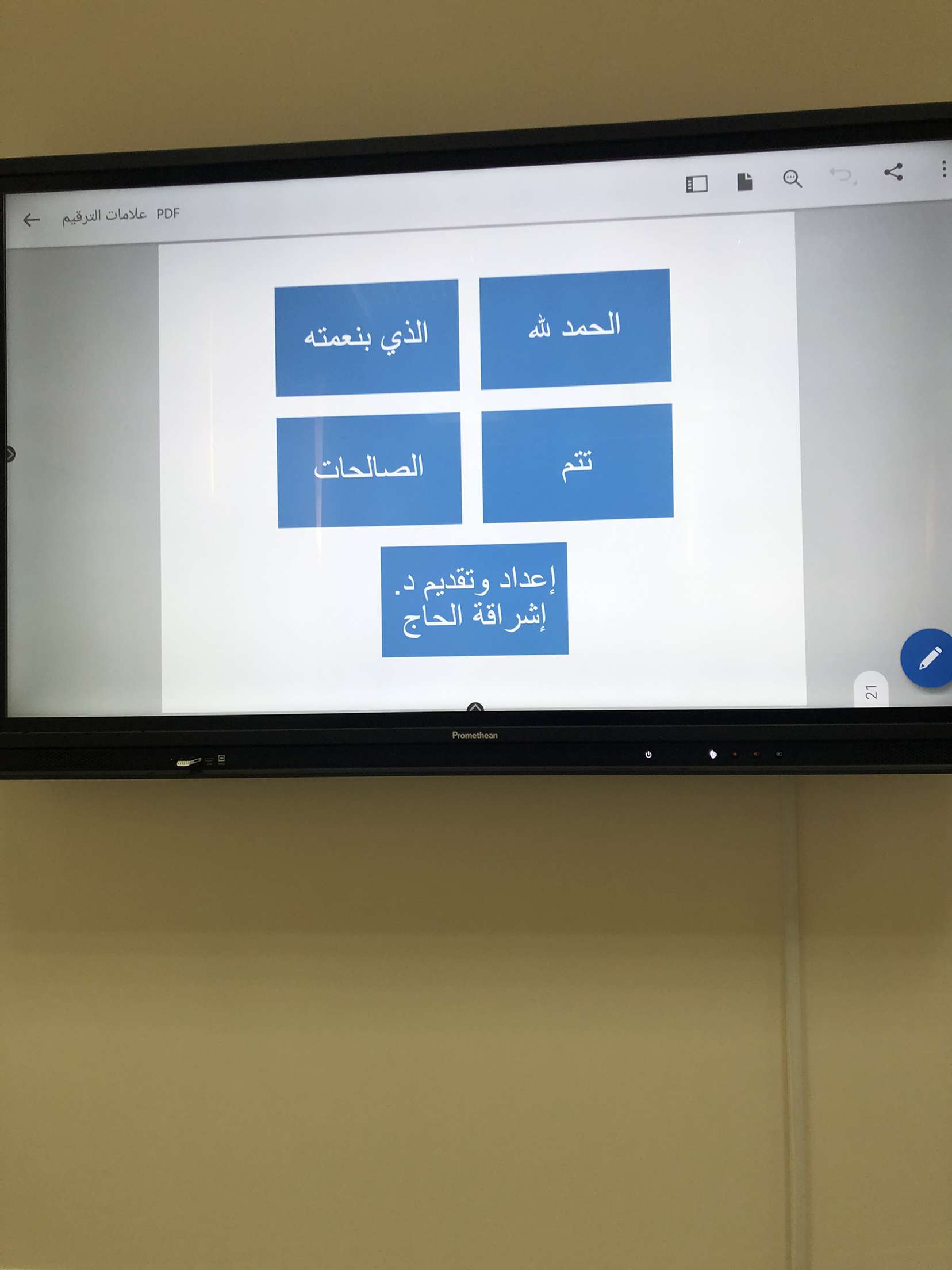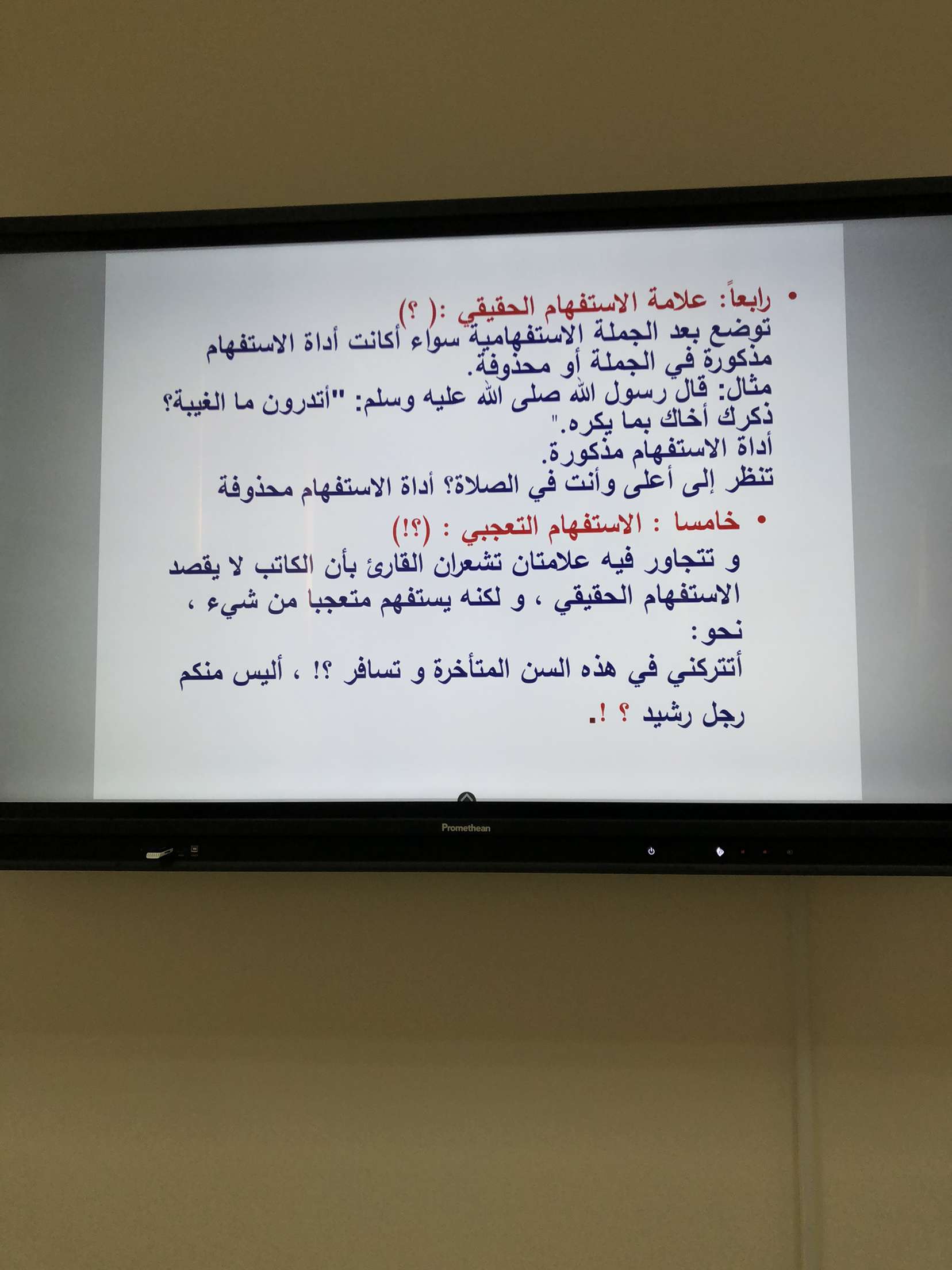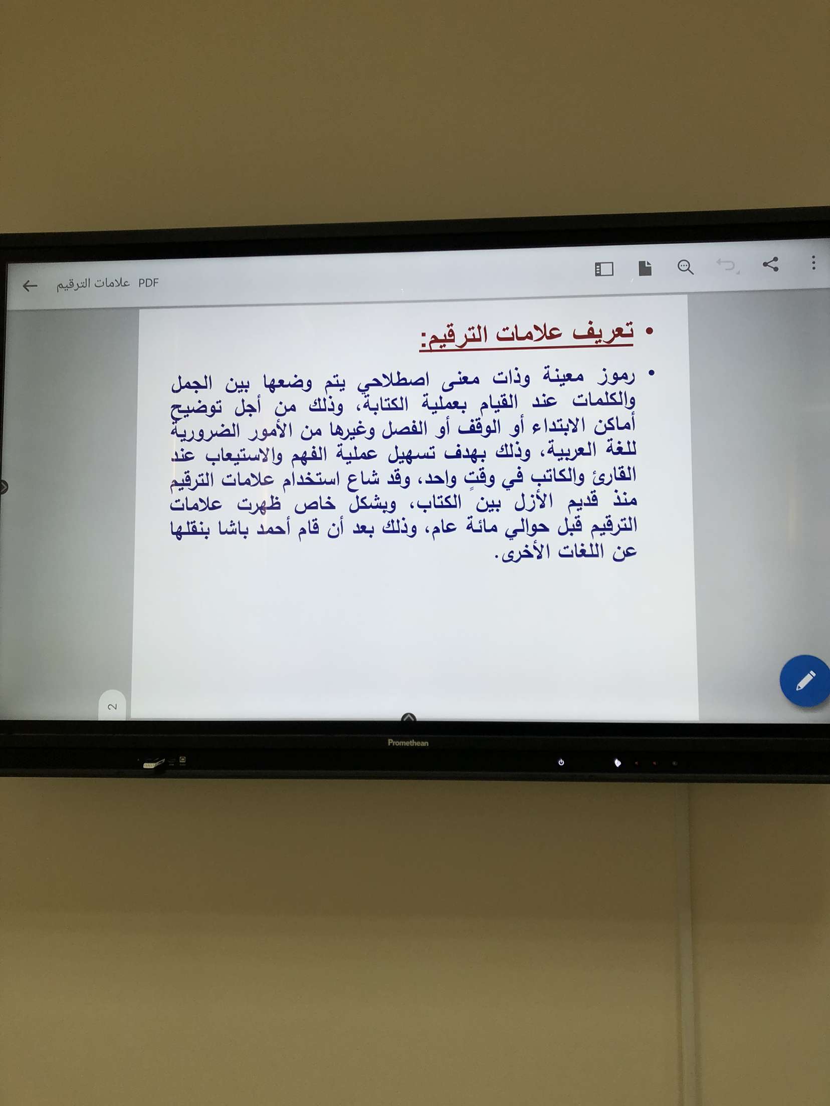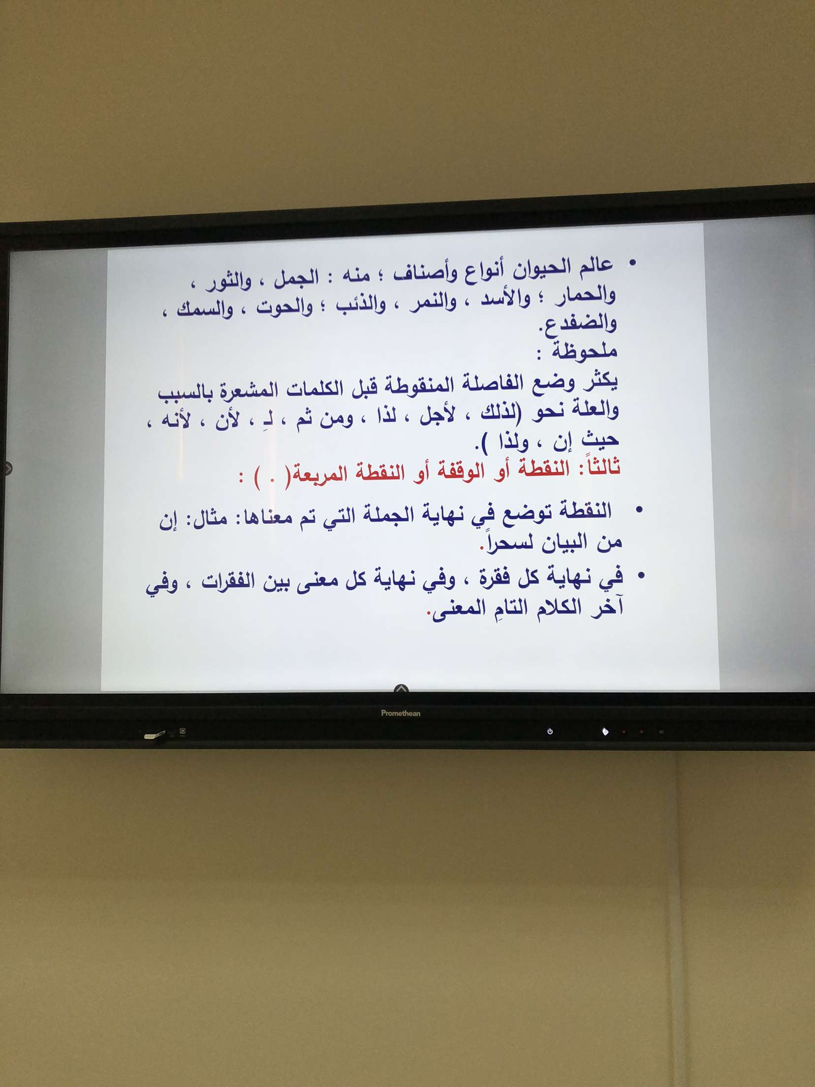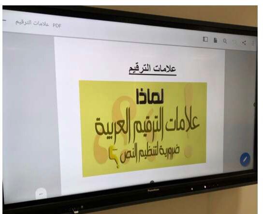 قامت الدكتورة بعرض بوربوينت استعرضت فيه تعريف لعلامات الترقيم التي تعينها على فهم المعنى المقصود بكل يسر و سهولة