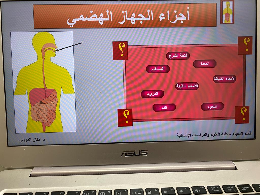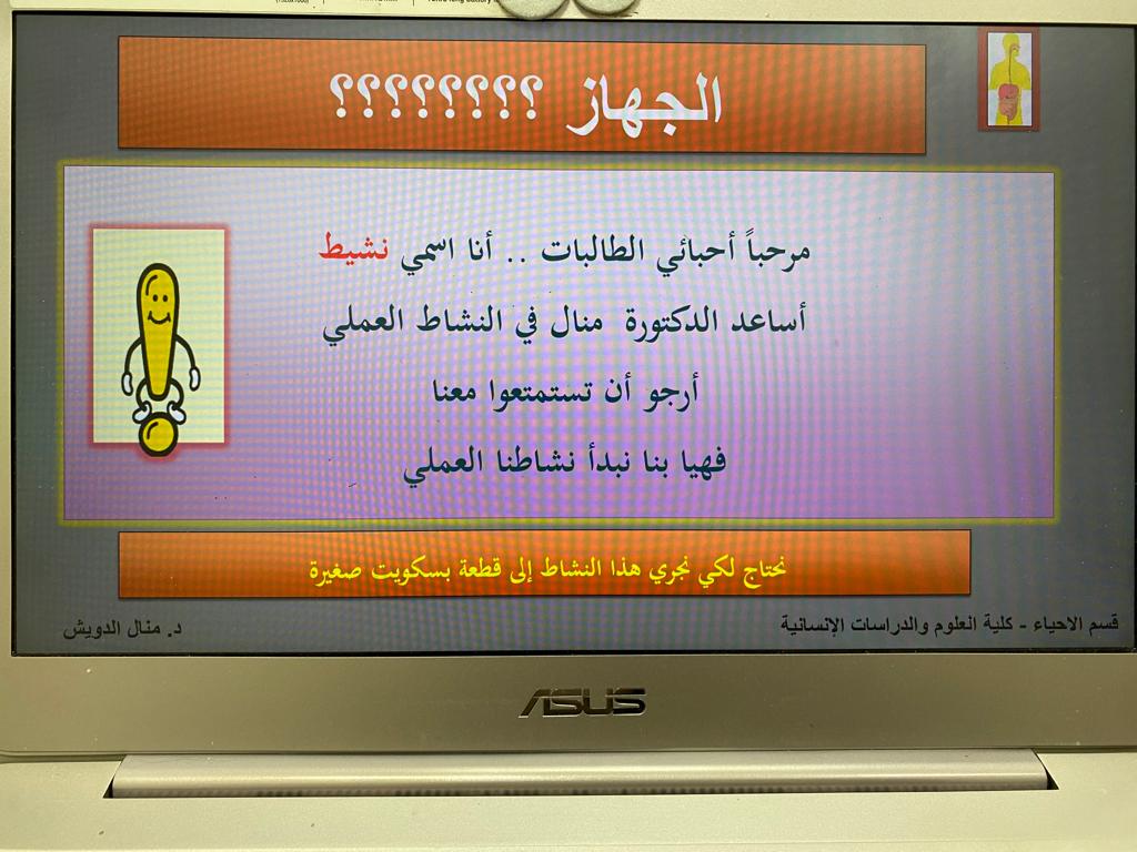 حيث كان يهدف النشاط إلى تعريف الطالبات بأجزاء الجهاز الهضمي ومراحل عمليه الهضم من خلال عرض مجسم يوضح مواقع أعضاء الهضم وعرض أفلام علميه تعليميه وتوزيع أوراق عمل ومسابقات متعددة وبعض الانشطة الحركية.
