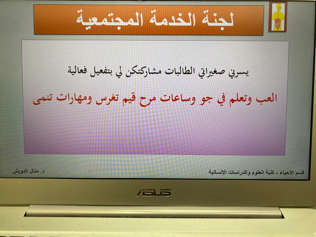 بإشراف الدكتورة منال عبد الله الدويش منسقة الخدمة المجتمعية في القسم وبمشاركة طالبات الصف الرابع والخامس والسادس وذلك في إطار المشاركة المجتمعية التي يقدمها قسم الأحياء.
