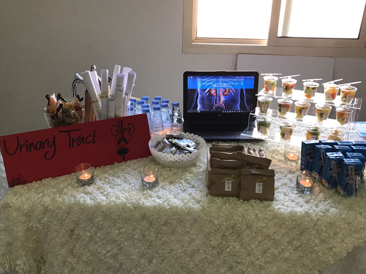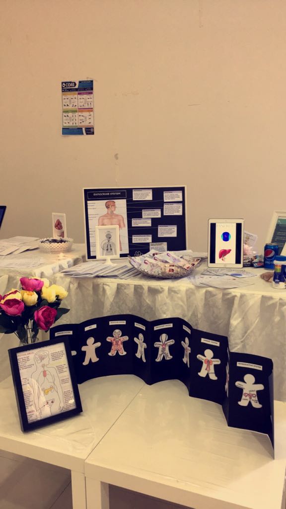 أقام طالبات المستوى الرابع والخامس والسادس من قسم الأشعة والتصوير الطبي وتحت إشراف الأستاذة سالي داوود فعالية بعنوان (إنا كل شيء خلقناه بقدر ) وذلك خلال يومين متتاليين الأحد والاثنين 26-3/27/ 1438هـ واشتملت هذه الفعالية على أركان توعوية لشرح وظائف الجسم المختلفة والدعوة للتفكر والتدبر بخلق الله وانقسمت الأركان بحسب أعضاء الجسم التالية: (الكبد والحويصلة الصفراوية والعمود الفقري والجهاز العصبي والغدد والجهاز القلبي الدموي والجهاز البولي والعظام والغضاريف)