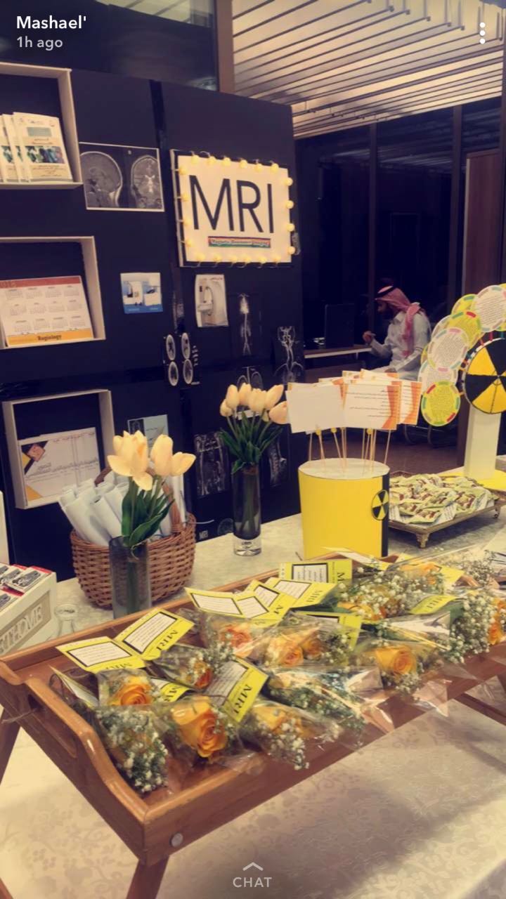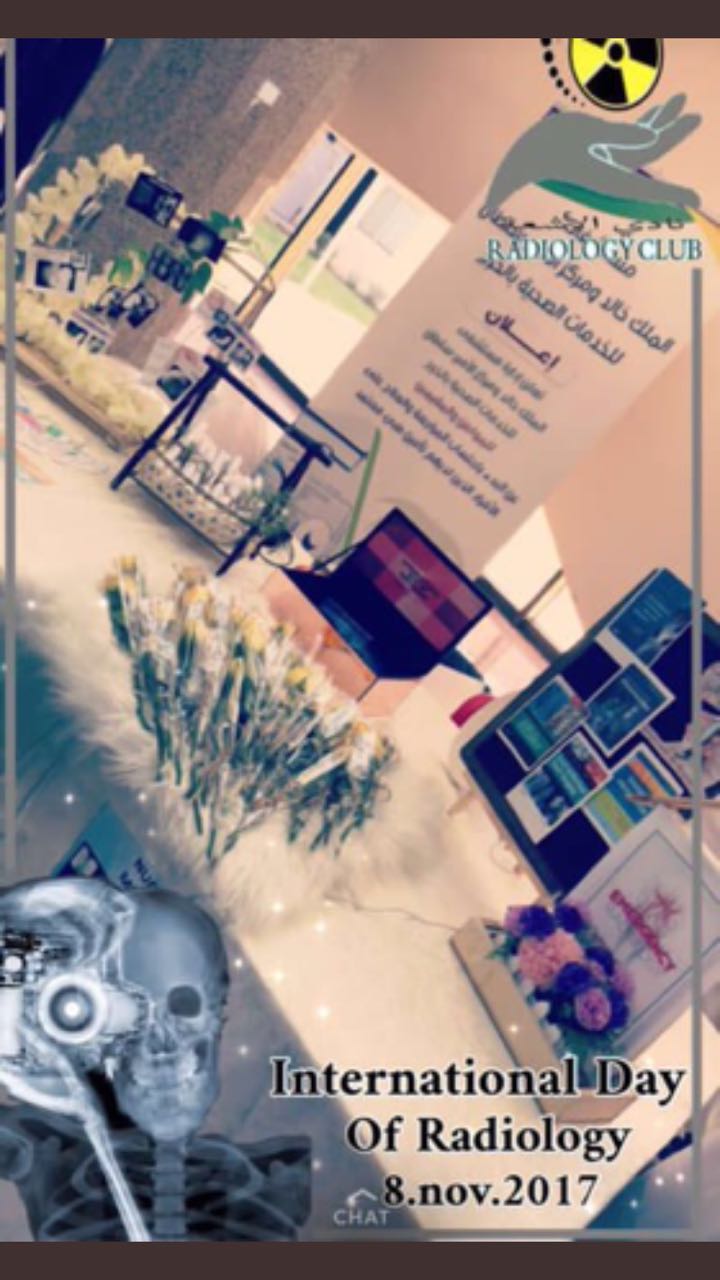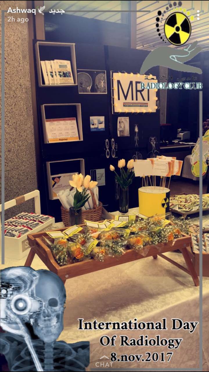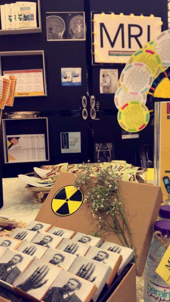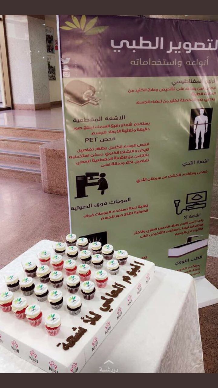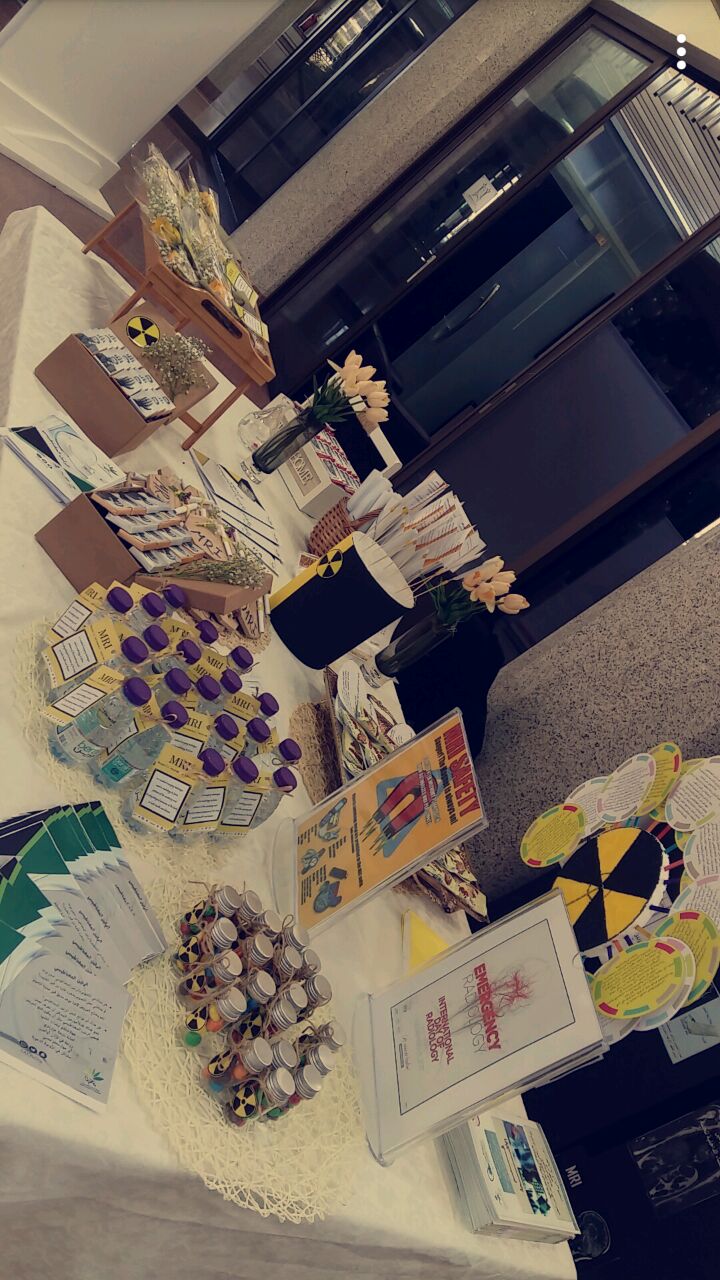 أقامت طالبات القسم من مختلف المستويات فعالية اليوم العالمي للأشعه بالتعاون مع الرابطة السعودية للتخصصات الطبية وقاموا بالتعريف عن جميع أقسام الأشعه ومخاطرها وكيفية الوقاية منها وتقديم منشوارات عنها مع تقديم كافة أنواع الضيافة. |