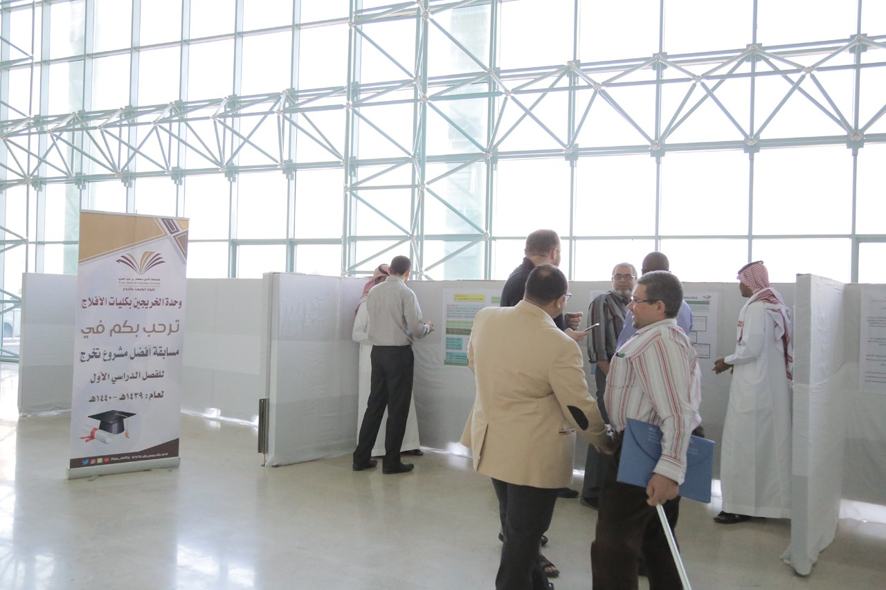 دخلت أقسام كليات الجامعة بالأفلاج في مسابقة أفضل مشروع تخرج للفصل الدراسي الأول من العام الجامعي 1439 / 1440 هـ .