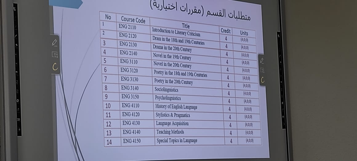 قامت لجنة الإرشاد الأكاديمي بقسم اللغة الإنجليزية بكلية العلوم والدراسات الانسانية بالخرج (أقسام الطالبات) بعقد اللقاء التعريفي للطالبات المستجدات بقسم اللغة الانجليزية وذلك يوم الأحد الموافق 11/12/2022 في تمام الساعة الثانية عشرة ظهرًا حضوريًا بقاعة ج 1-10.