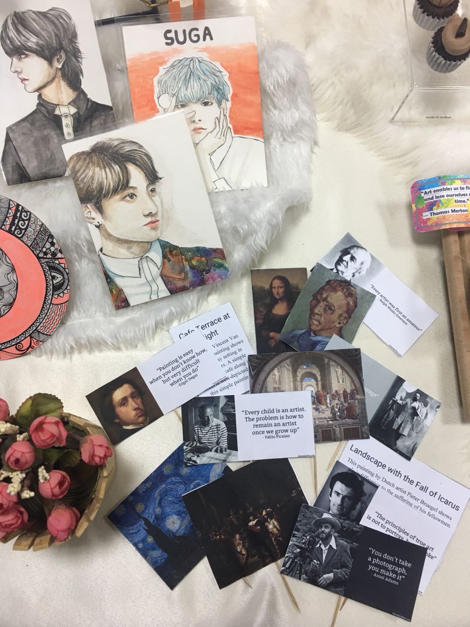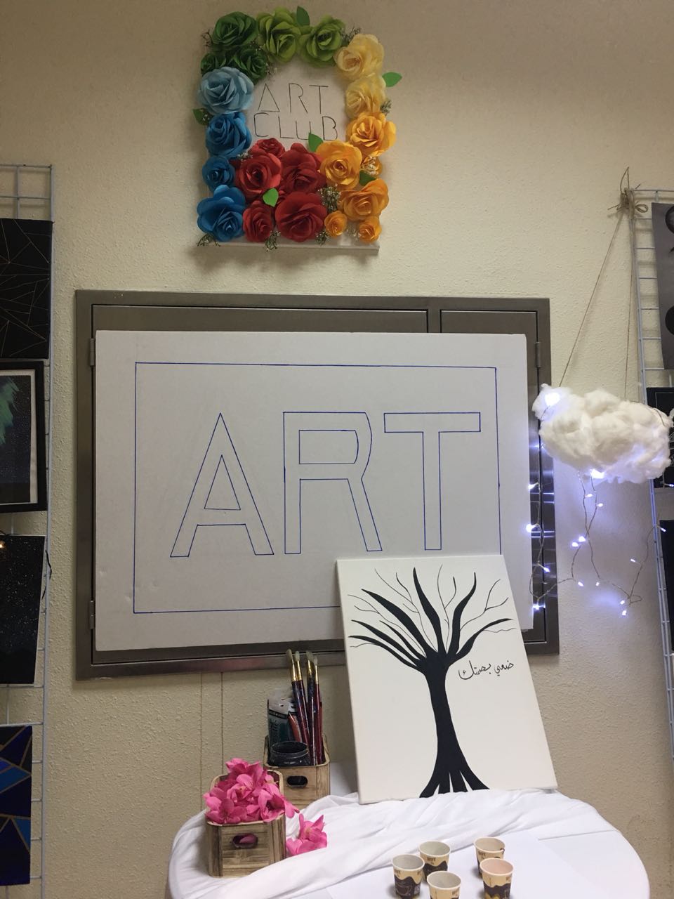 - ففي يوم الثلاثاء الموافق 21/2/1440هـ كان هناك نشاطًا عن الفنون البصرية يهدف إلى نشر الفن والمرح للطالبات وقد كان هناك معرضًا لأعمال طالبات ورسوماتهم حيث كان بإشراف الأستاذة وردة وهاج أنيسة.