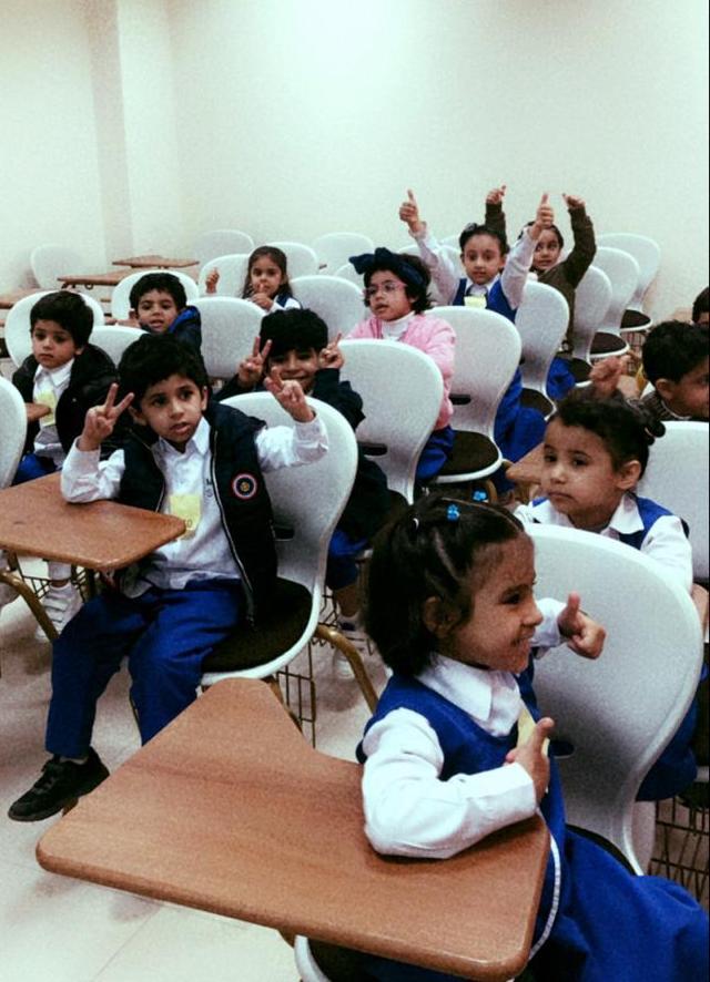 استضاف قسم اللغة الإنجليزية بكلية العلوم والدراسات الإنسانية (طالبات)بالخرج يوم الأربعاء الموافق 1441/3/30هـ بإشراف وكيلة القسم الدكتورة فوزية هرشان والدكتورة مها العطوي مدارس الشرق الأوسط العالمية من مختلف المراحل في جولة تعليمية واستكشافية لمرافق الكلية برفقة معلماتهم، فقد قامت طالبتان من قسم اللغة الإنجليزية (العنود العتيبي وأمجاد السبيعي) ببعض الأنشطة للأطفال تهدف إلى إثراء لغتم الإنجليزية وتقويتها وفي نهاية الاستضافة تم تكريم المشاركين وشكرهم على حضورهم.