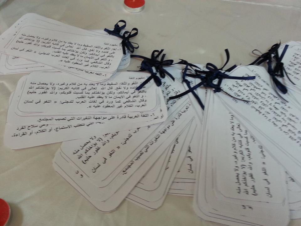 وقد بدأ البرنامج بآيات من الذكر الحكيم ثم مقدمة من الطالبة أسماء العسكر وكلمة عن فضل اللغة العربية وتلاها كلمة رئيسة القسم عن فضل اللغة العربية، أعقبها خاطرة من الطالبة /مشاعر المعجب وغرائب اللغة العربية وعجائبها من الطالبة/ صالحة وأغرب الشعر وخطبتان واحدة بدون ألف والأخرى بدون نقط وتحدثت الطالبة /نورة عن حال اللغة العربية الآن ثم جاء حوار بين اللغة الفصحى واللغة العامية بين الطالبة /أثير السبيعي ونورة المظيبري وتحدثت الطالبة /أسماء العسكر عن أثر اللغة العربية على العلوم الأخرى ثم حوار مع أ.د/عواطف بنت أحمد هندي أجرته وكيلة الكلية د/حصة الهزاني عن علاقة اللغة العربية بالعلوم.تخلل البرنامج فيديوهات عن رأي العلماء في اللغة العربية وفيديو عن أثر اللغة العربية في علم الرياضة وصاحب البرنامج بعض المداخلات من العضوات عن اللغة العربية وكيفية استعادة مكانتها وفي ختام البرنامج تم الإعلان وتوزيع الجوائز على الفائزات في المسابقة التي أجراها قسم اللغة العربية في القرآن الكريم وكتابة القصة والالقاء . وتخلل البرنامج توزيع المنشورات والمطويات عن اللغة العربية وصاحب البرنامج أركان خارج المسرح.
