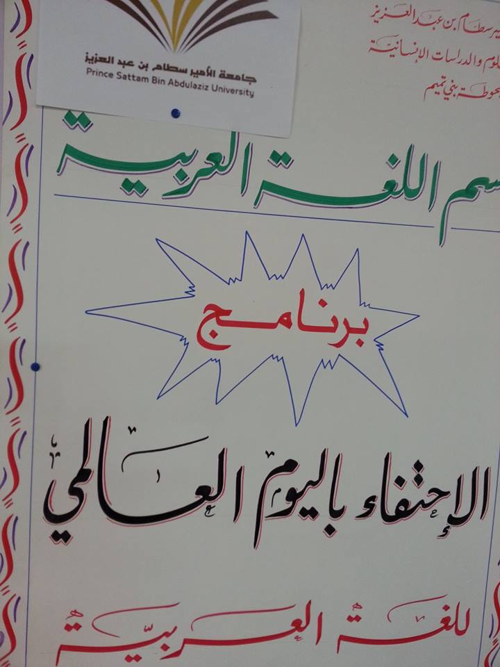 أقام قسم اللغة العربية بكلية العلوم والدراسات الانسانية بحوطة بني تميم فعاليته بعنوان "لغتي هويتي" ويهدف البرنامج الاحتفاء باليوم العالمي للغة العربية .